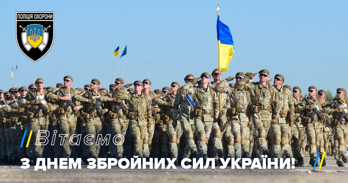 Поліція охорони висловлює щиру подяку військовослужбовцям Збройних Сил України за їхній неоціненний подвиг, відвагу й героїчну службу. Ви — щит нашої держави, опора нашого народу та символ незламності.
