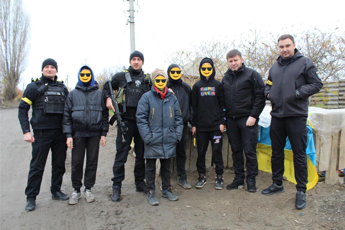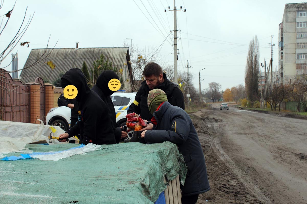 Перший блокпост райцентру – обов’язкова зупинка, адже тут чергують друзі поліції охорони – хлоп’ята із «чотирнадцятої бригади тероборони Куп’янська». Від смаколиків юні бійці відмовляються, мовляв там далі, у селах, вони потрібніші…