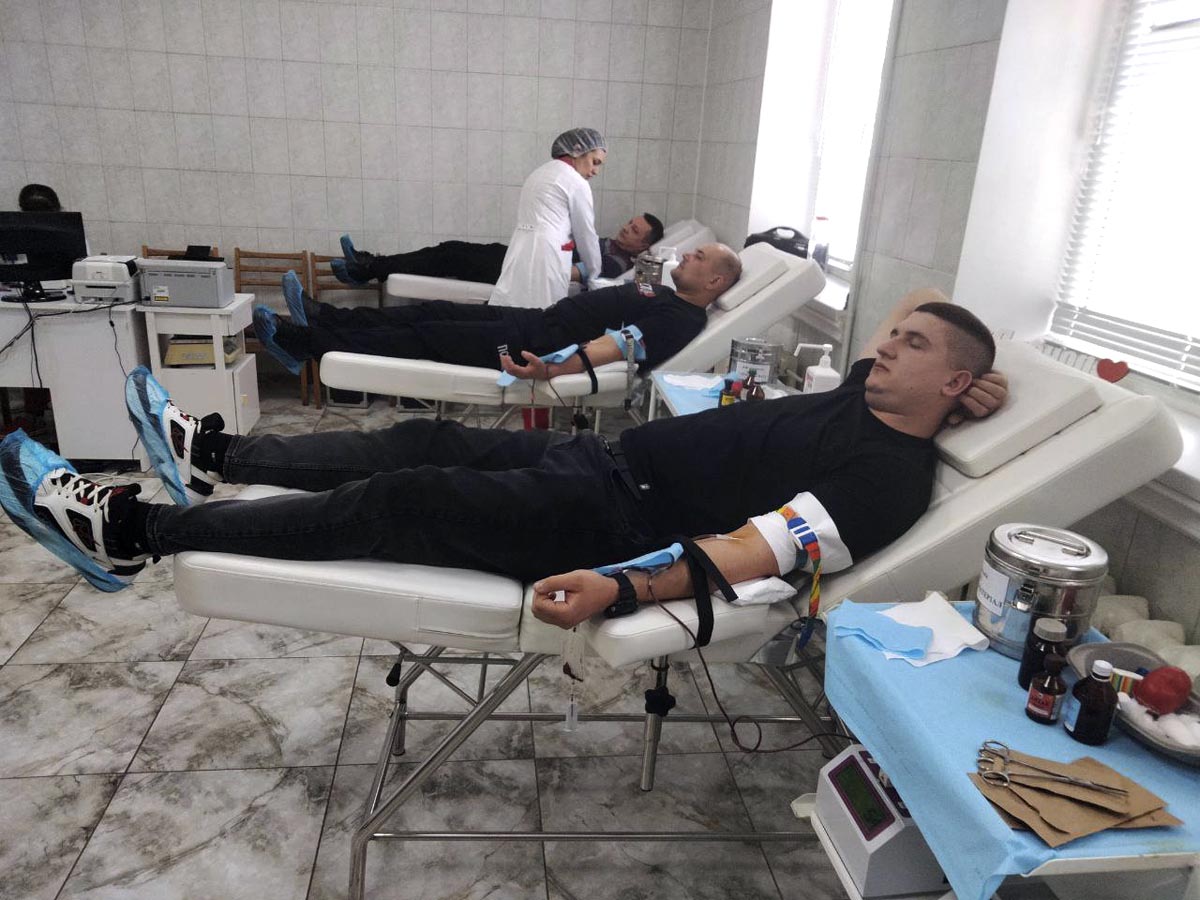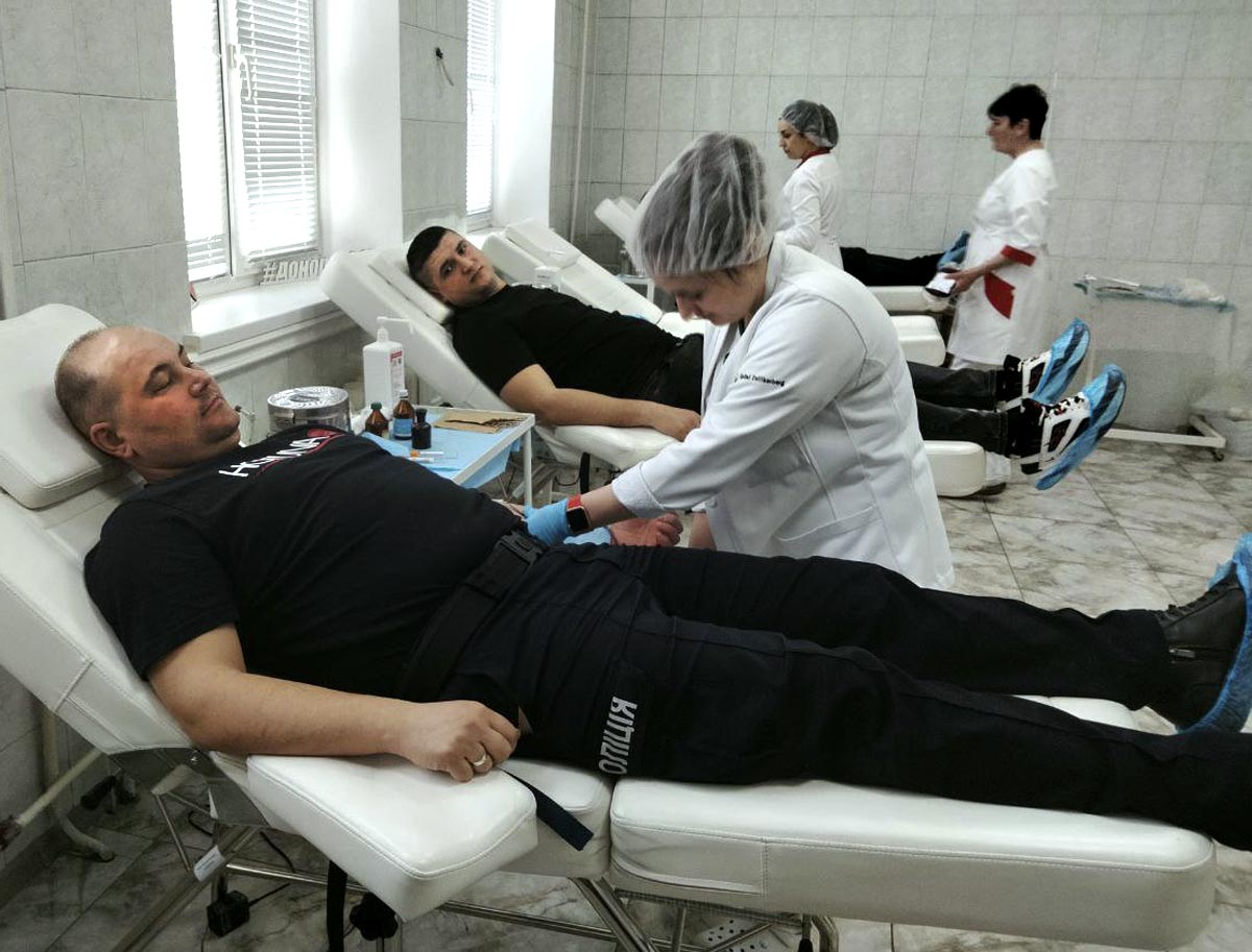 Сьогодні дев'ятеро працівників Управління поліції охорони у Чернівецькій області здали кров. Так поліцейські долучилися до всіх тих буковинців, які добровільно приходять у Чернівецький обласний центр служби крові і стають донорами.