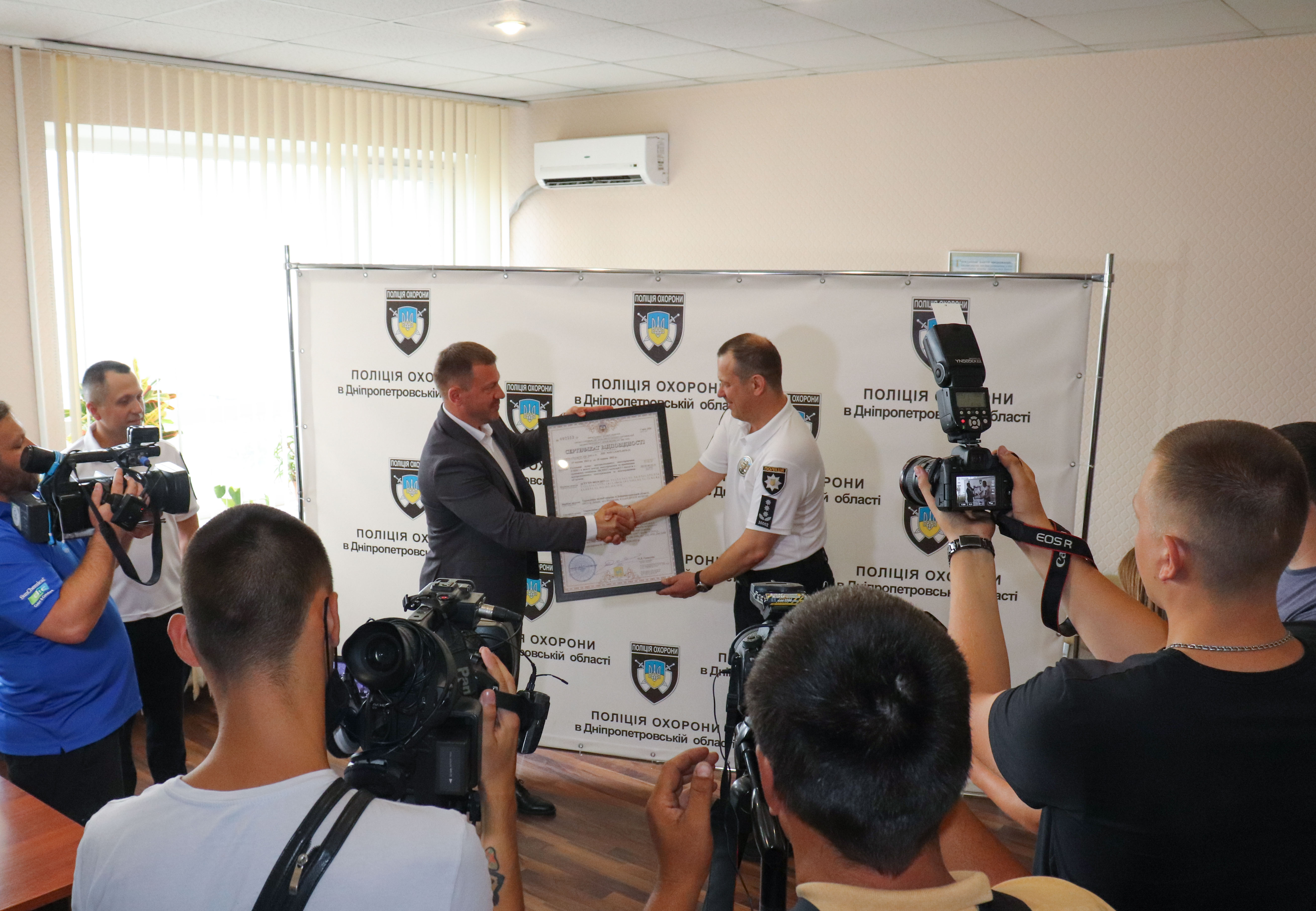 Напередодні урочистої церемонії відкриття модернізованого центру спостереження та приймання тривожних сповіщень на службовій парковці начальник Департаменту поліції охорони Сергій Парфенюк вручив працівникам УПО Дніпропетровської області ключі від шести нових службових автомобілів «Рено Дастер», які будуть задіяні для несення служби нарядами поліції охорони з реагування на тривожні сповіщення, які надходитимуть на модернізований ЦСПТС.