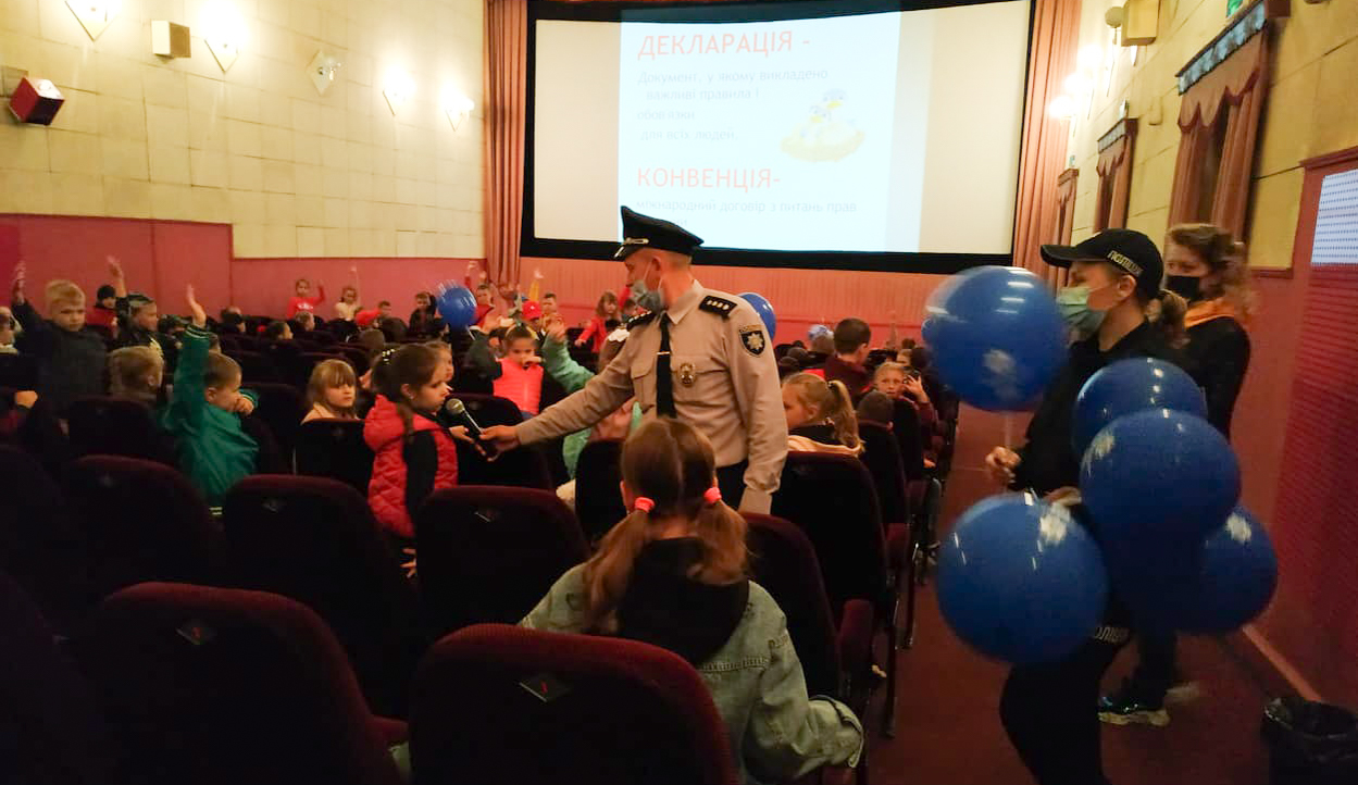 1 червня у Житомирському кінотеатрі імені Івана Франка, перед переглядом мультфільму, працівники ювенальної превенції ГУНП разом з поліцейськими охорони нагадали житомирським школярам про правила безпеки.