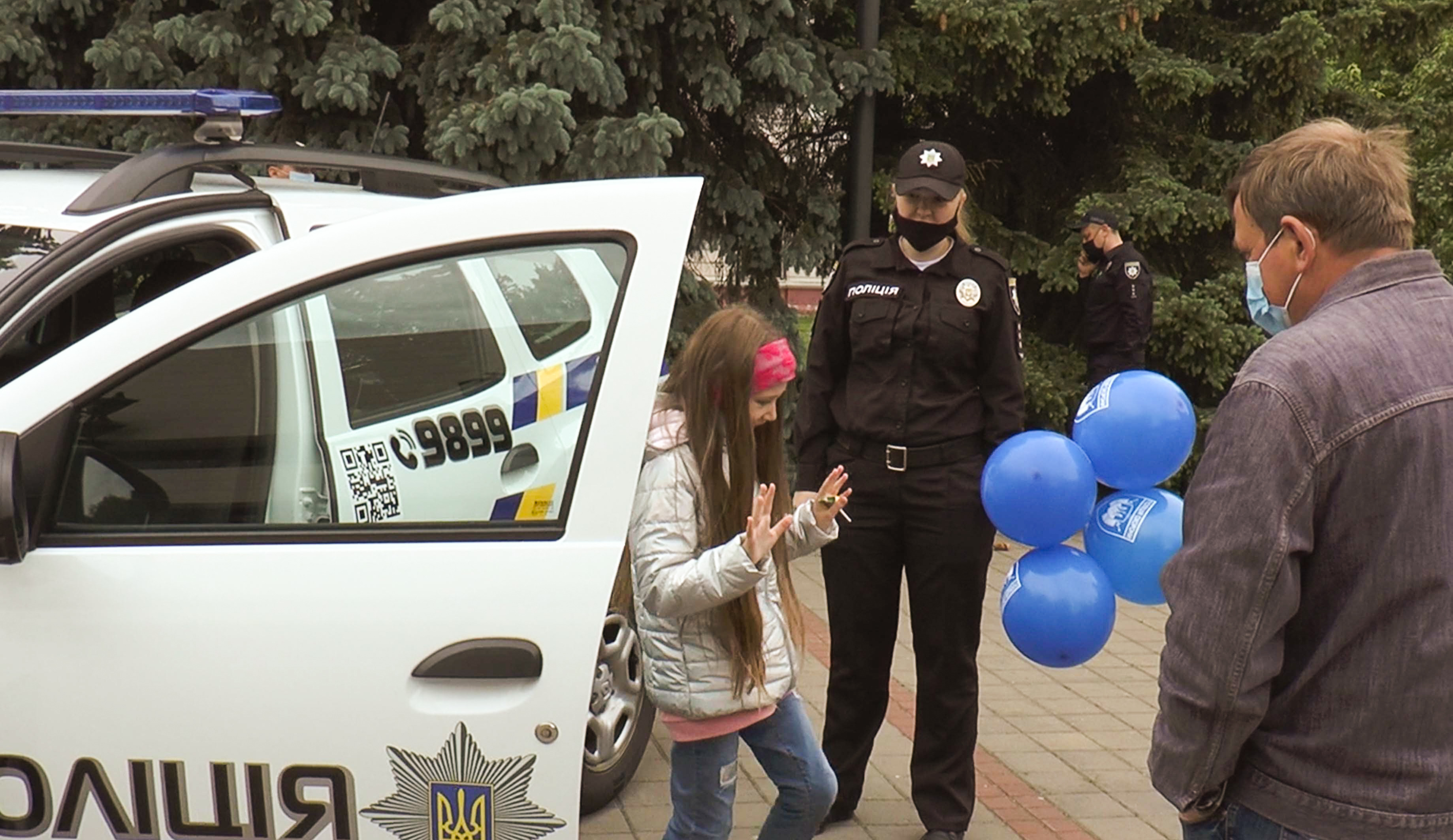Поліцейські охорони Полтави привітали дітлахів з Днем захисту дітей.