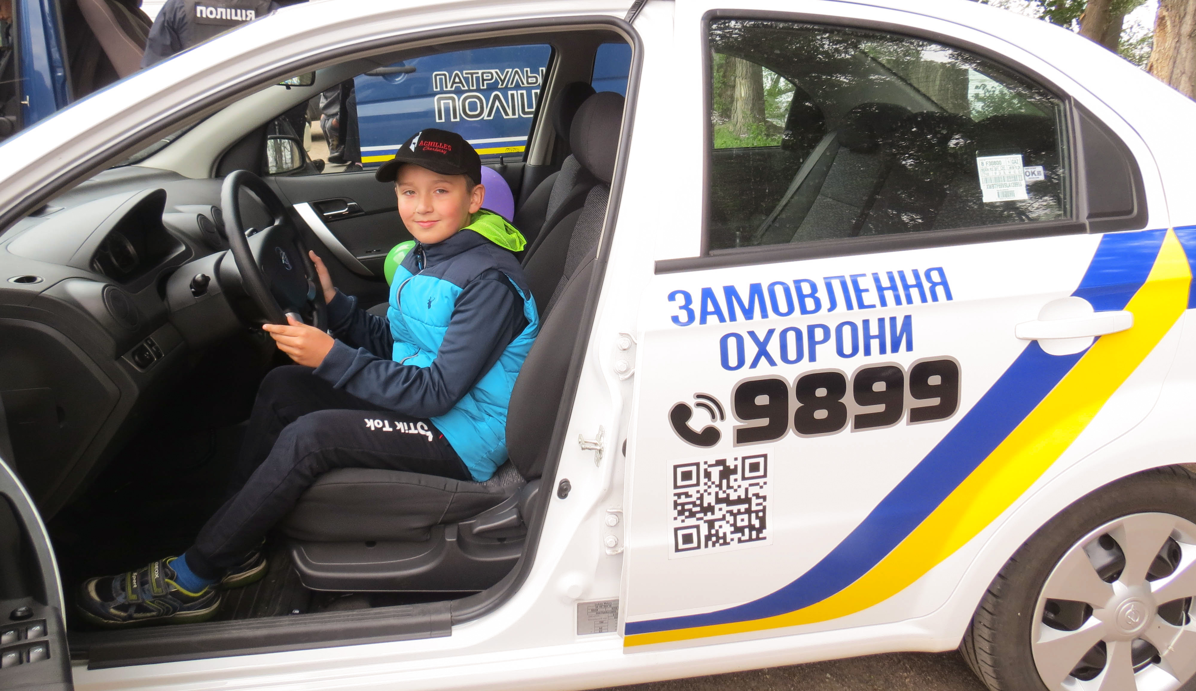 Далі дітвора побігла фотографуватись до автомобілів поліції охорони. А бажаючих покатали вулицями Вознесенська.