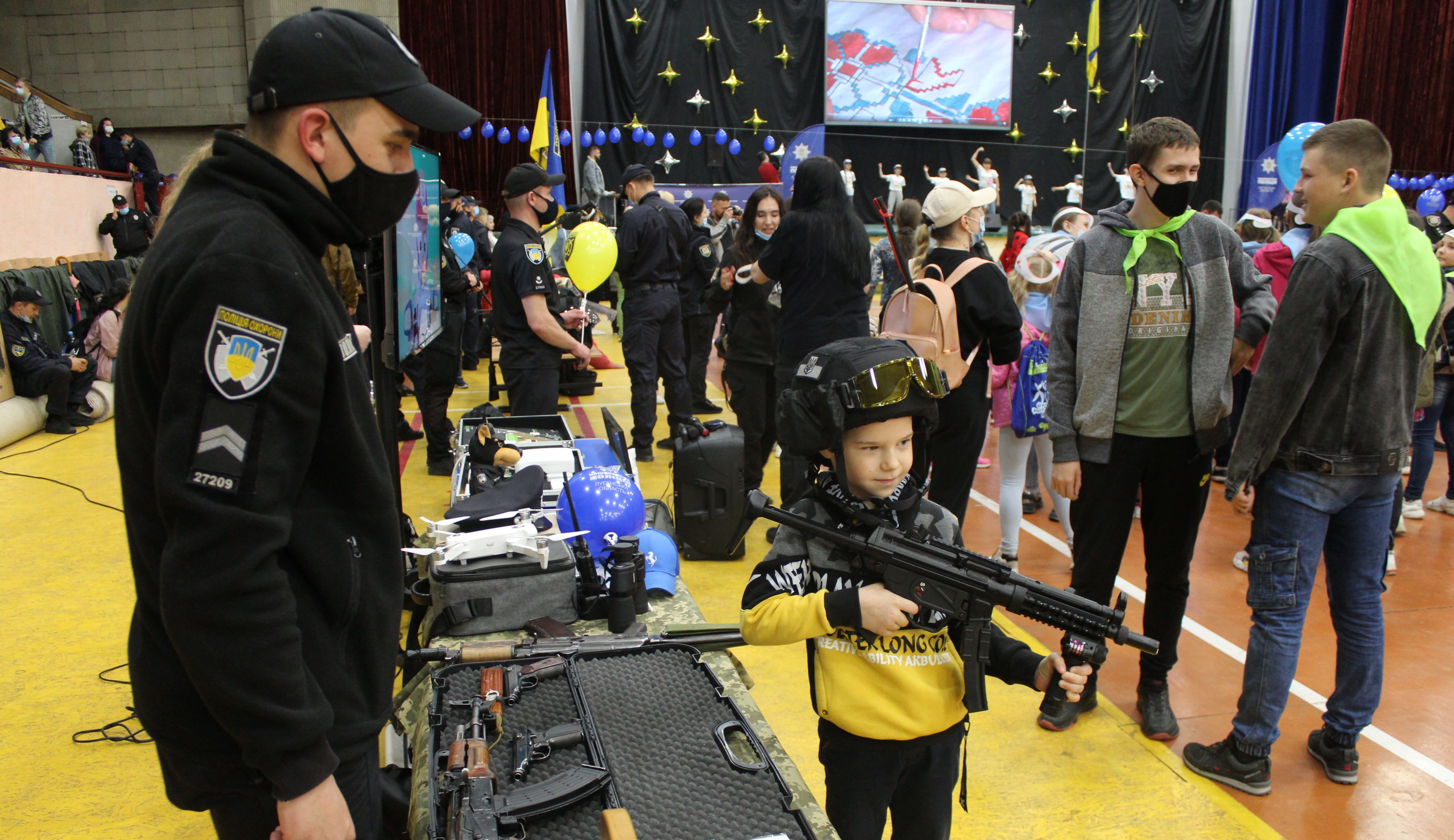 І дорослі, і малі вишикувались у чергу, щоб посидіти за кермом службової автівки поліції охорони, приміряти бронежилет, потримати у руках зброю, здійснити обшук за допомогою металошукача. Діти залюбки, виконували жартівливі службові завдання, приймали участь у невеличких конкурсах і отримували подарунки – значки, прапорці, кульки, календарики.