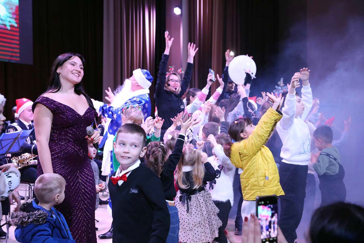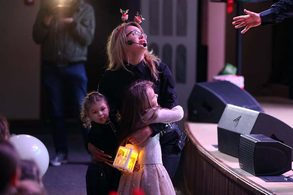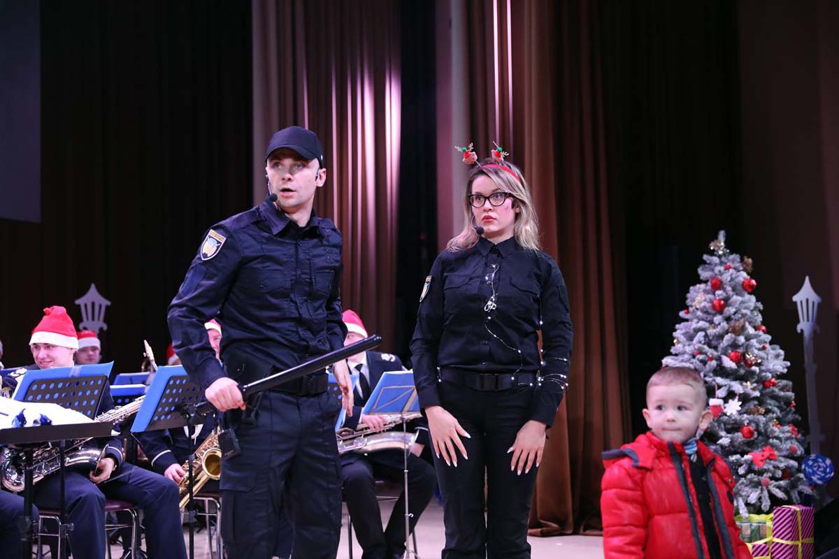 Для дітей підготували насичену програму: яскрава казкова вистава з інтерактивами, іграми та сюрпризами подарувала малечі атмосферу справжнього дива. Особливий настрій створив оркестр ГУНП у Київській області — їхня музика наповнила залу теплом і новорічною магією.