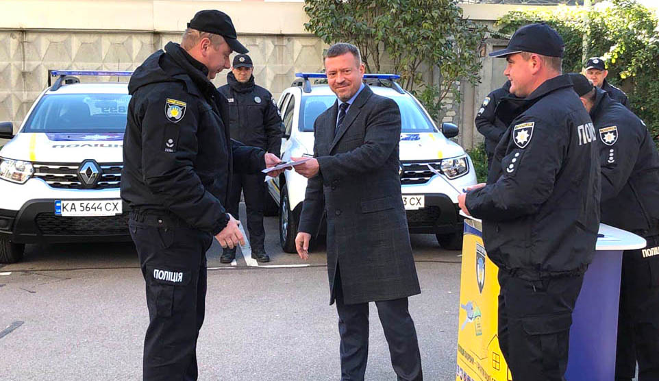 Вручення ключів від автомобілей відбулося за участю начальника Департаменту поліції охорони Сергія Парфенюка. Правоохоронці Київщини отримали 10 службових машин «Renault DUSTER». Ключі від нових автівок вручили керівникам районних підрозділів поліції.