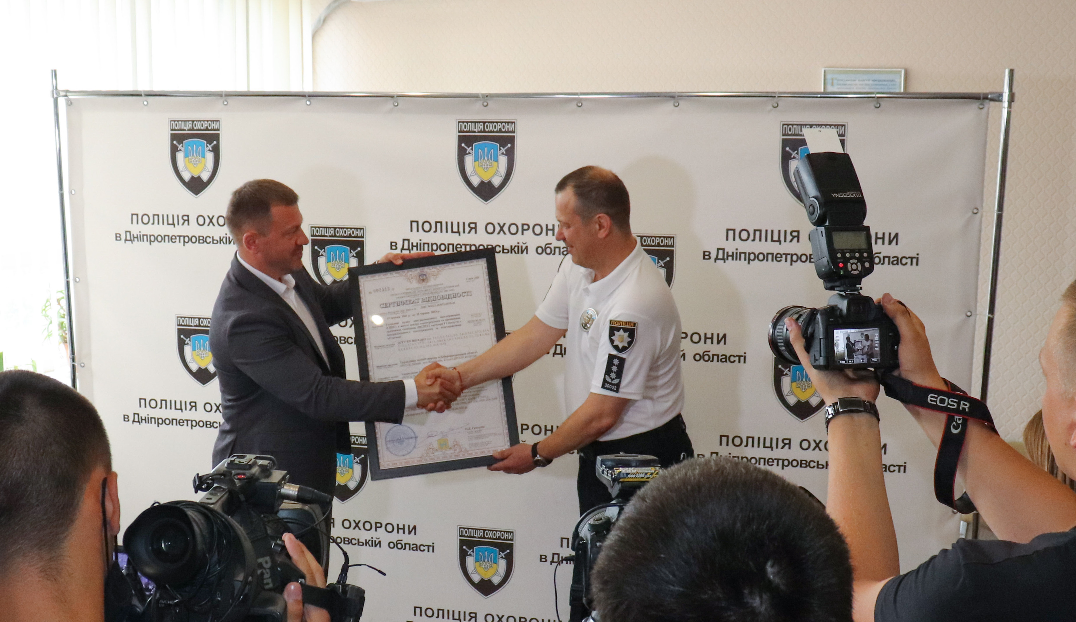 Напередодні урочистої церемонії відкриття модернізованого центру спостереження та приймання тривожних сповіщень на службовій парковці начальник Департаменту поліції охорони Сергій Парфенюк вручив працівникам УПО Дніпропетровської області ключі від шести нових службових автомобілів «Рено Дастер», які будуть задіяні для несення служби нарядами поліції охорони з реагування на тривожні сповіщення, які надходитимуть на модернізований ЦСПТС.