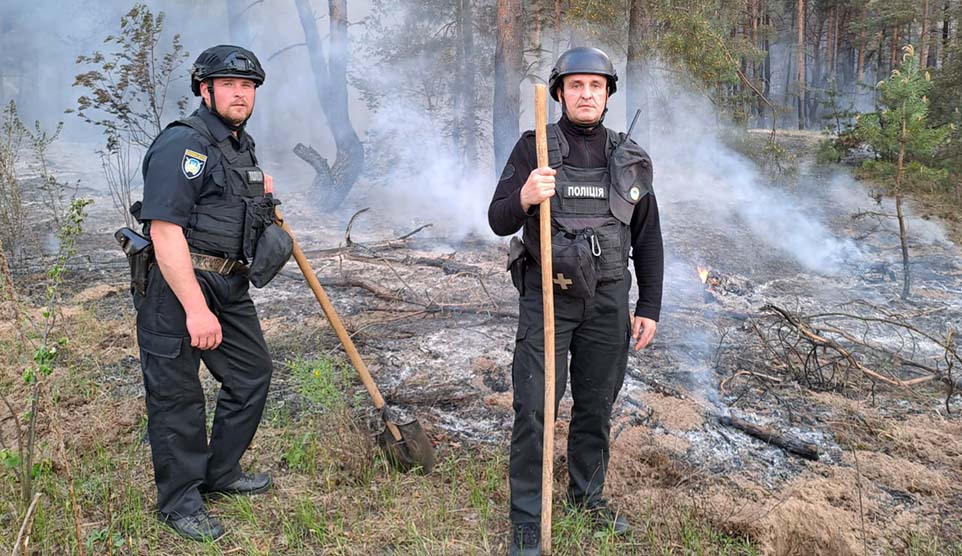 Співробітники групи охорони об ʼ єктів та публічної безпеки Дмитро Кобенко і Олександр Сидоренко разом з начальником Куп'янського районного відділення Управління поліції охорони в Харківській області...