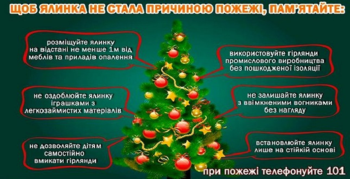 – Встановлення новорічної ялинки пов’язано з необхідністю суворого дотримання правил пожежної безпеки. Найменша необережність, порушення правил пожежної безпеки при використанні електричних гірлянд, застосування свічок, або розпалювання бенгальських вогнів у приміщеннях, де встановлена ялинка, можуть призвести до пожежі, - розповів начальник Управління поліції охорони полковник поліції Михайло Чорнописький. - Встановивши пожежну сигналізацію спеціальні прилади виявляють пожежу на її початковій стадії – за ознаками задимлення, підвищення температури в приміщенні, при появі відкритого полум’я, тому господарі зможуть уникнути значних матеріальних збитків.