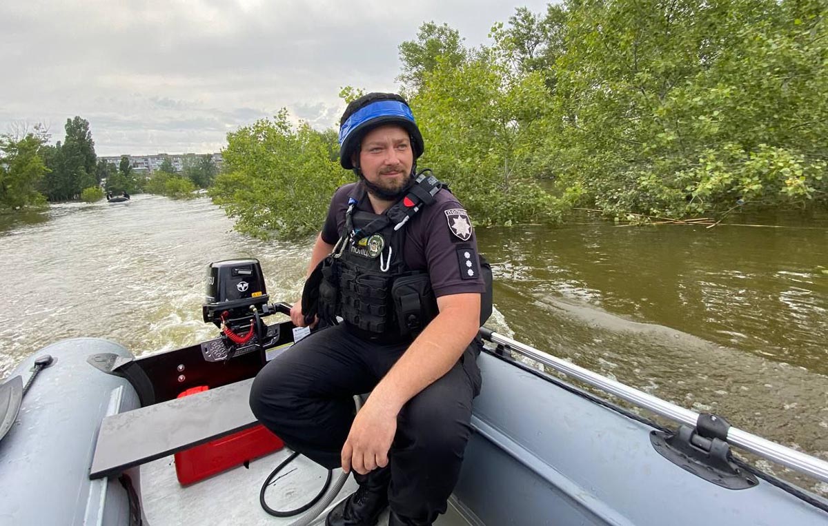 Працівники Управління поліції охорони в Херсонській області одними з перших включилися в роботу. У найскладніші дні вони виконували надзвичайно важливі завдання: евакуація людей із затоплених мікрорайонів, зокрема з херсонського «Острова», допомога в транспортуванні гуманітарних вантажів до відрізаних водою районів, підтримка громадян, які втратили свої домівки.