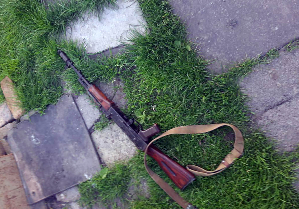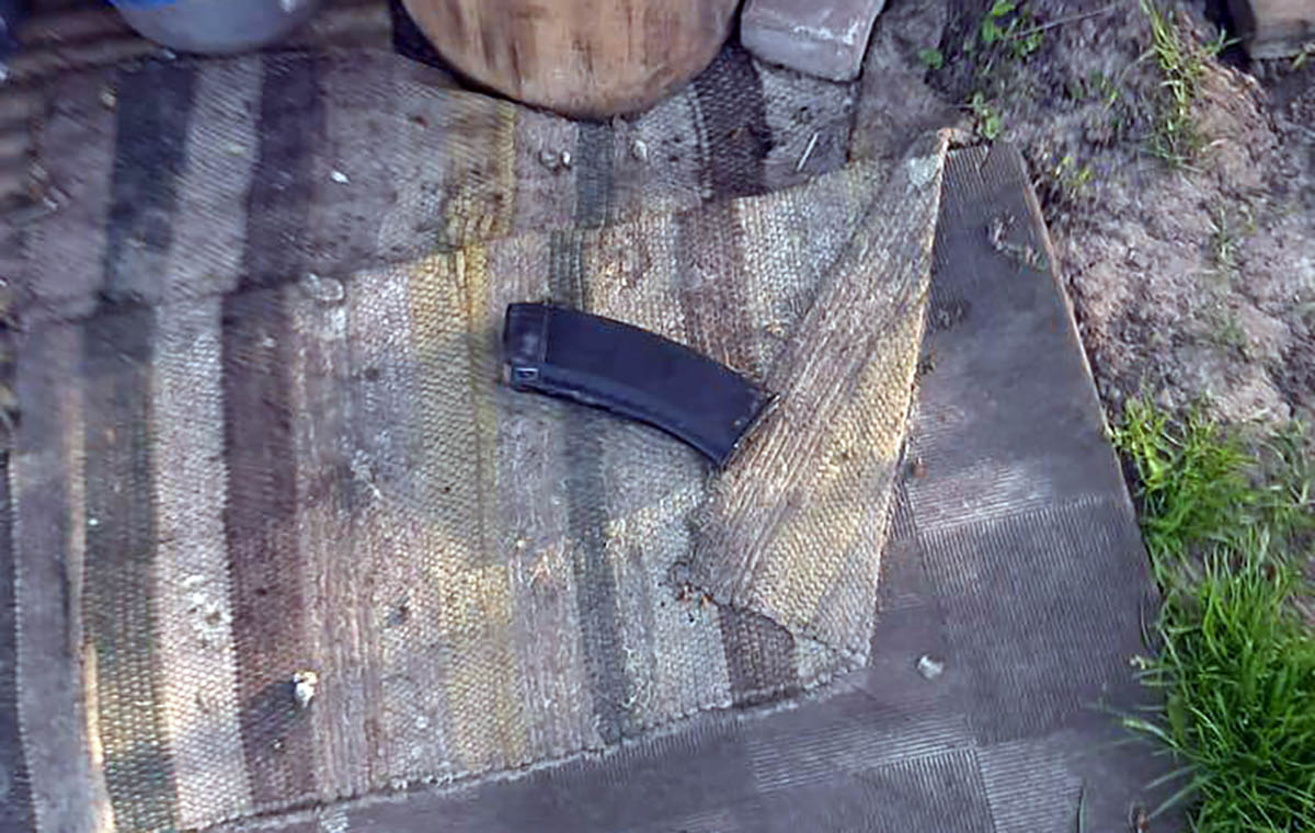 Прибувши на місце події правоохоронці помітили двох чоловіків. Один в руках тримав автоматичну зброю АК-74 та магазин з набоями. Правоохоронці встановили осіб. Ними виявились 51-річний та 55-річний місцеві мешканці, які перебували у стані алкогольного сп’яніння.