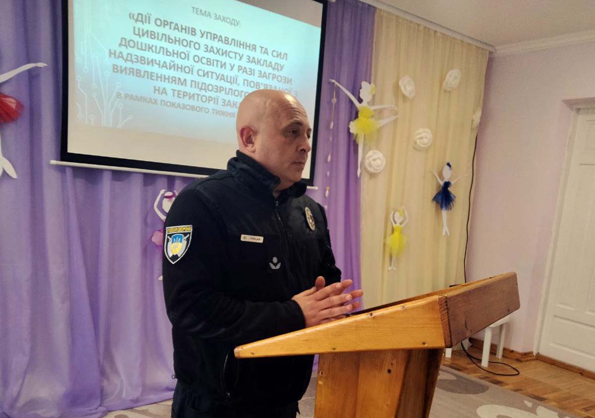 Заступник начальника УПО Степан Грицай розповів керівникам дитячих садочків про їхні першочергові дії у разі виникнення небезпечної ситуації.