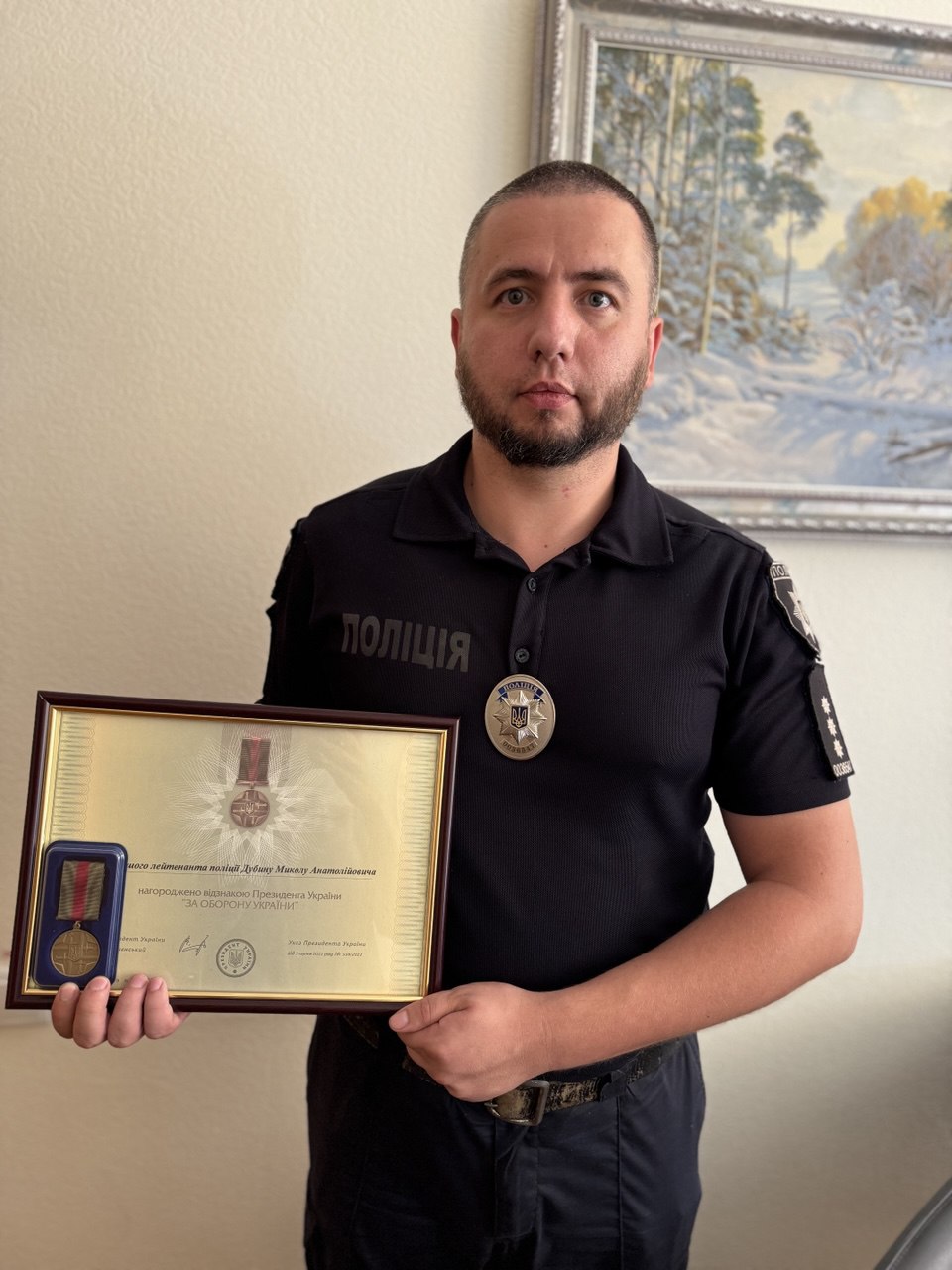 Старшого лейтенанта поліції Миколу Дубину, співробітника батальйону фізичної безпеки «Титан» Управління поліції охорони з фізичної безпеки в м. Києві, відзначено державною нагородою Президента України — медаллю «За оборону України».