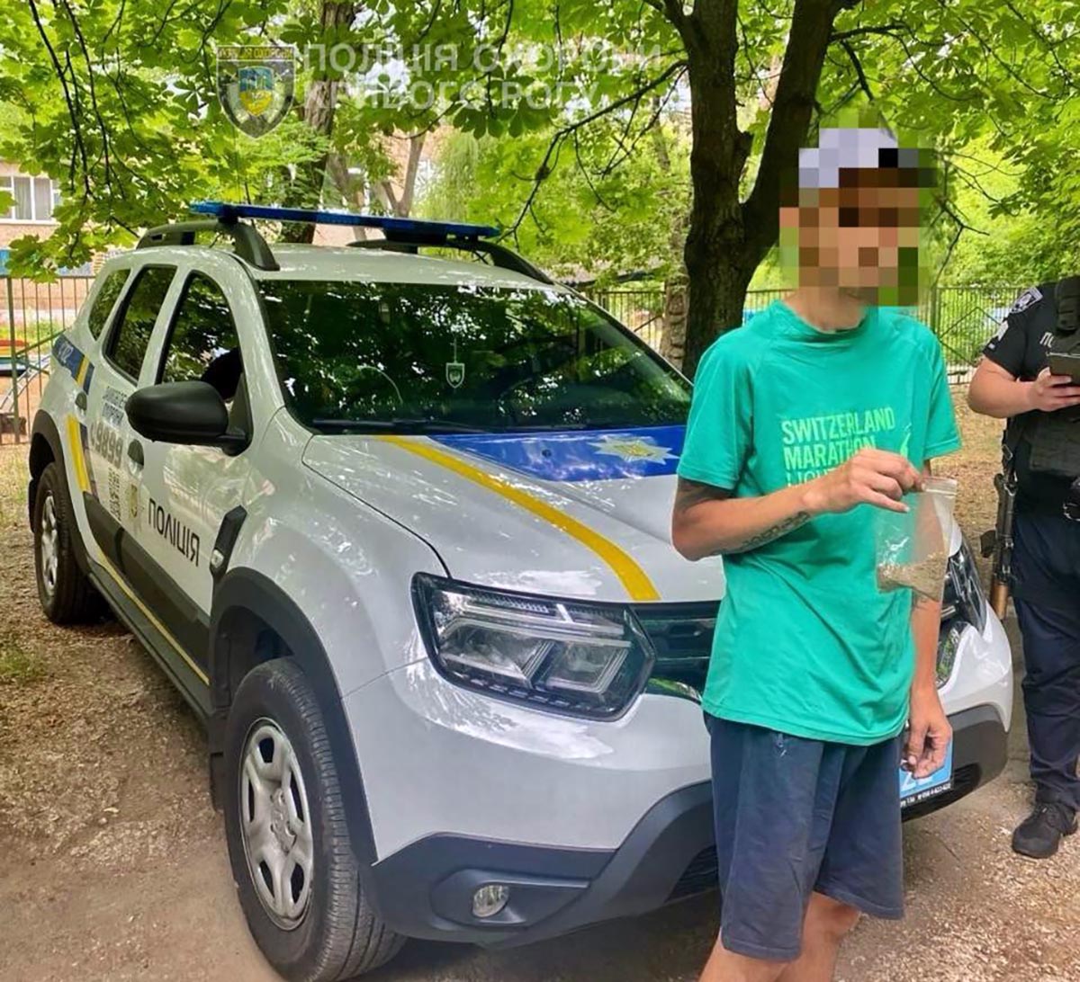 Під час патрулювання містом правоохоронці помітили чоловіка, який поводив себе дивно. При поверхневому огляді у громадянина було виявлено зіп-пакет з порошкоподібною речовиною зеленого кольору, схожою на наркотичну.