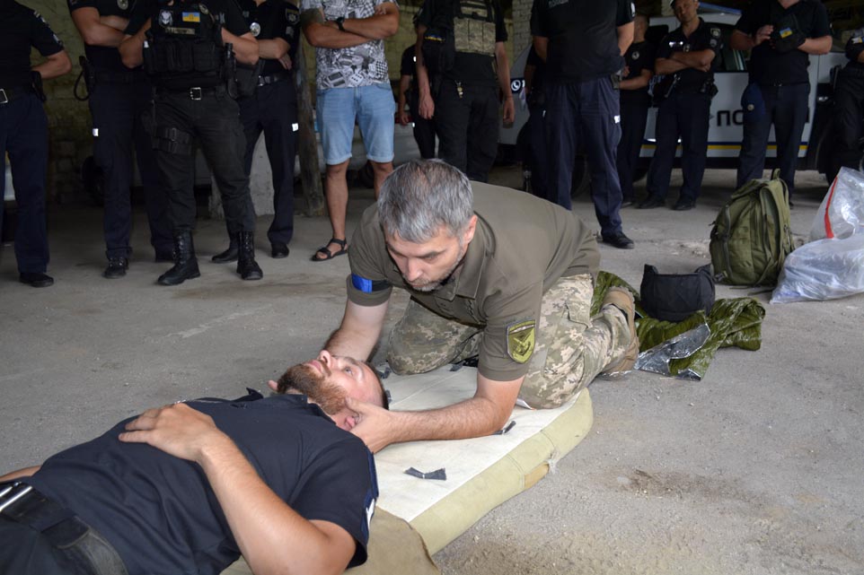 Під керівництвом досвідченого військового фахівця поліцейські набували необхідних практичних навичок з надання першої допомоги травмованим, зупинки критичних кровотеч, виконання протоколів надання невідкладної допомоги.
