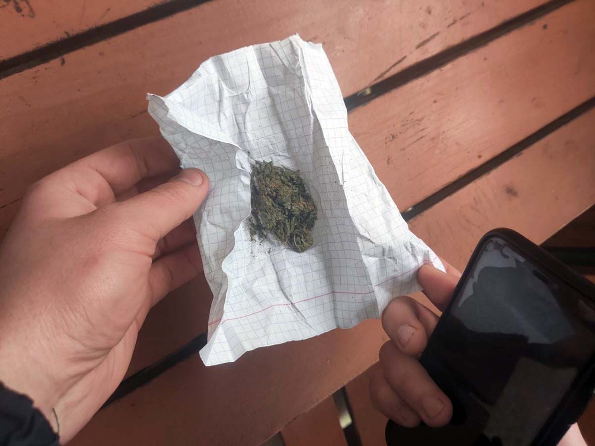Перевіривши документи та здійснивши поверхневий огляд, поліцейські охорони виявили у громадянина згорток з забороненою речовиною рослинного походження схожою на канабіс.
