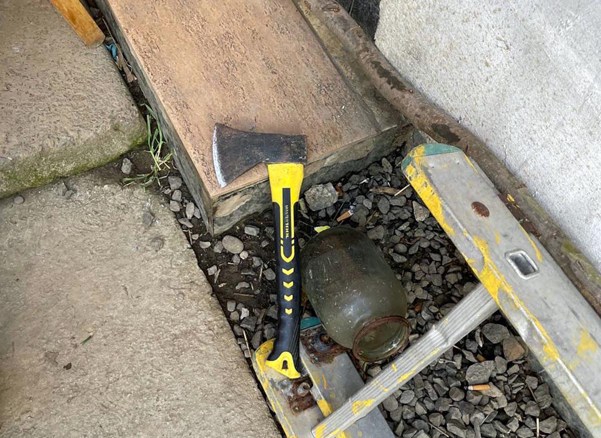На місце спрацювання негайно направили наряд реагування поліції охорони Закарпаття. Прибувши на місце події, правоохоронці затримали 35-річного ужгородця, який, перебуваючи в стані алкогольного спʼяніння, поводився неадекватно, кидав бруківку, погрожував сокирою в руках.