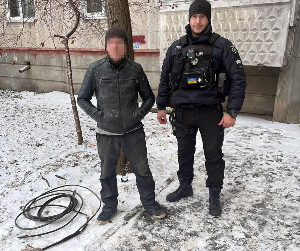 Після прибуття до вказаної у повідомленні багатоповерхівки у Шевченківському районі, поліцейські охорони помітили громадянина, який поспіхом виходив із підвалу. Чоловік ніс в руках моток кабелю довжиною близько 10 метрів, тож був негайно затриманий.