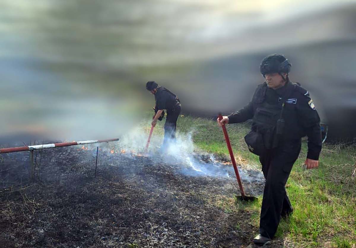 Впродовж години співробітники поліції охорони грамотно і злагоджено локалізовували пожежу. В цей час над їхніми головами свистіли снаряди, поруч розривались боєприпаси та й в самій траві чатувала смертельна загроза…
