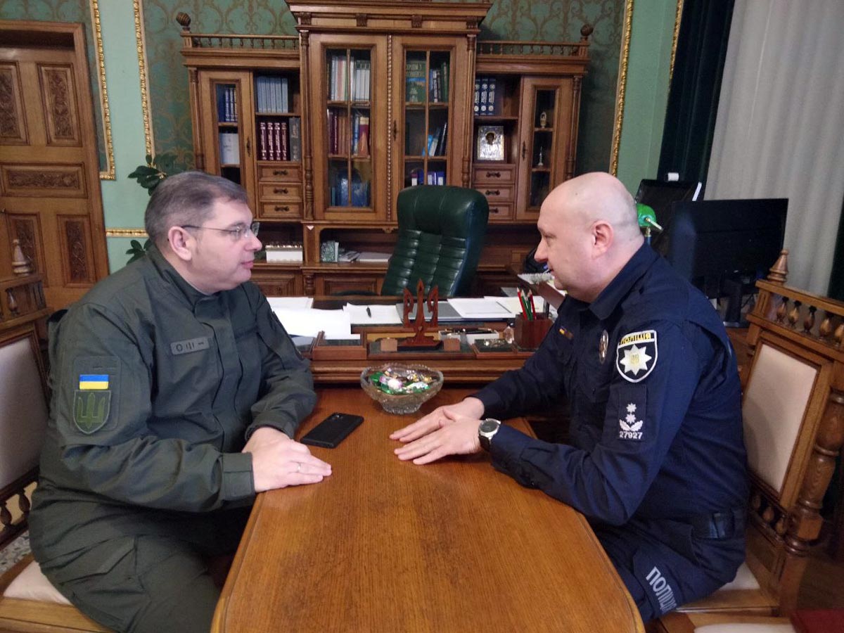 Начальник Управління поліції охорони у Чернівецькій області Михайло Романюк зустрівся із головою Чернівецької обласної військової адміністрації Русланом Запаранюком.
