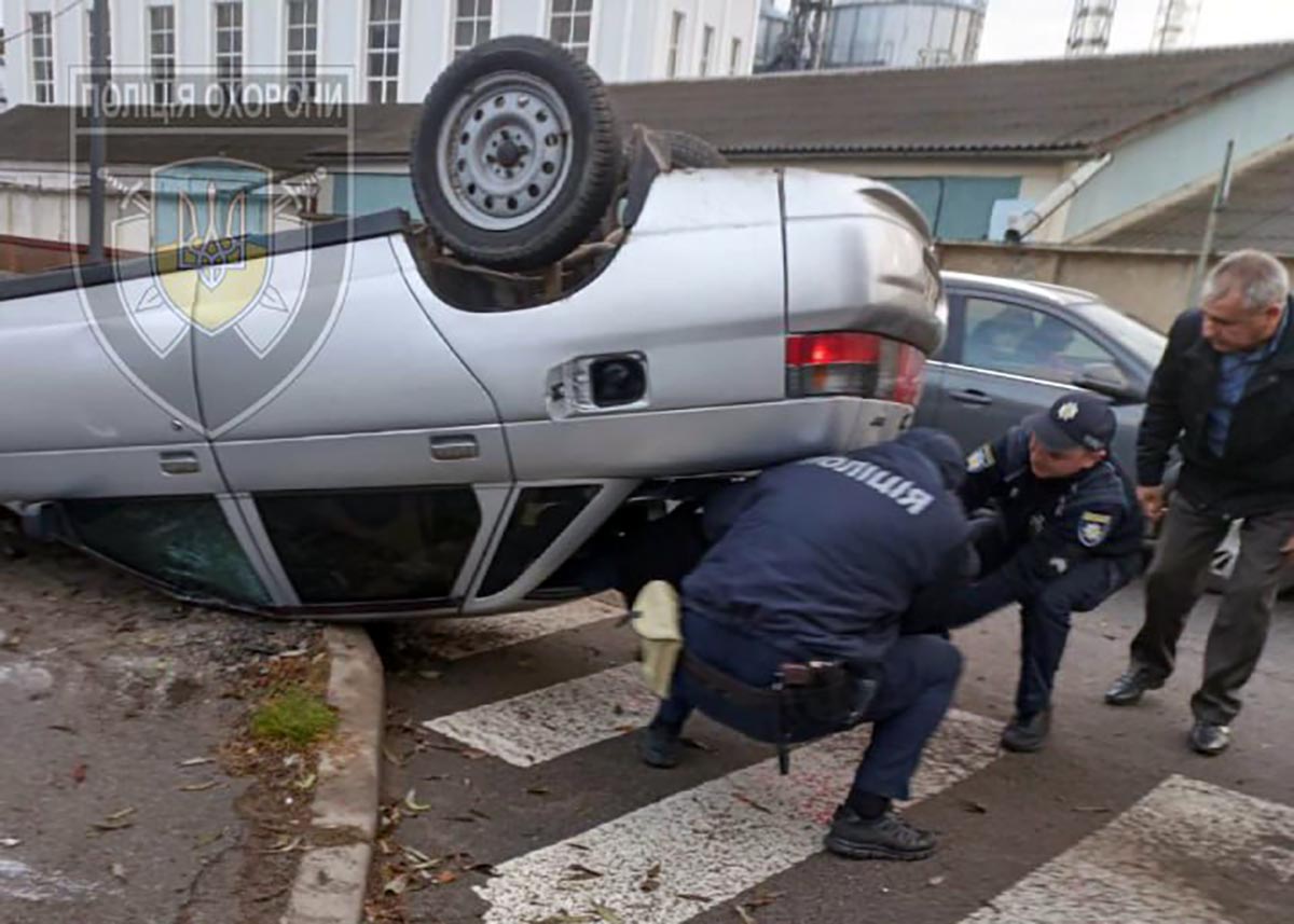 Сьогодні, 28 жовтня, близько 7 години ранку, чергова група у складі двох поліцейських охорони, виїжджаючи з повороту на вулицю в місті Немирів, виявила перекинутий на дах автомобіль, що лежав на узбіччі. Всередині автівки знаходилися люди, які не могли самостійно вибратись.