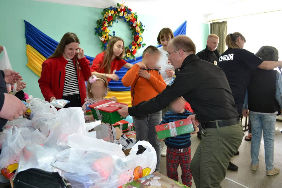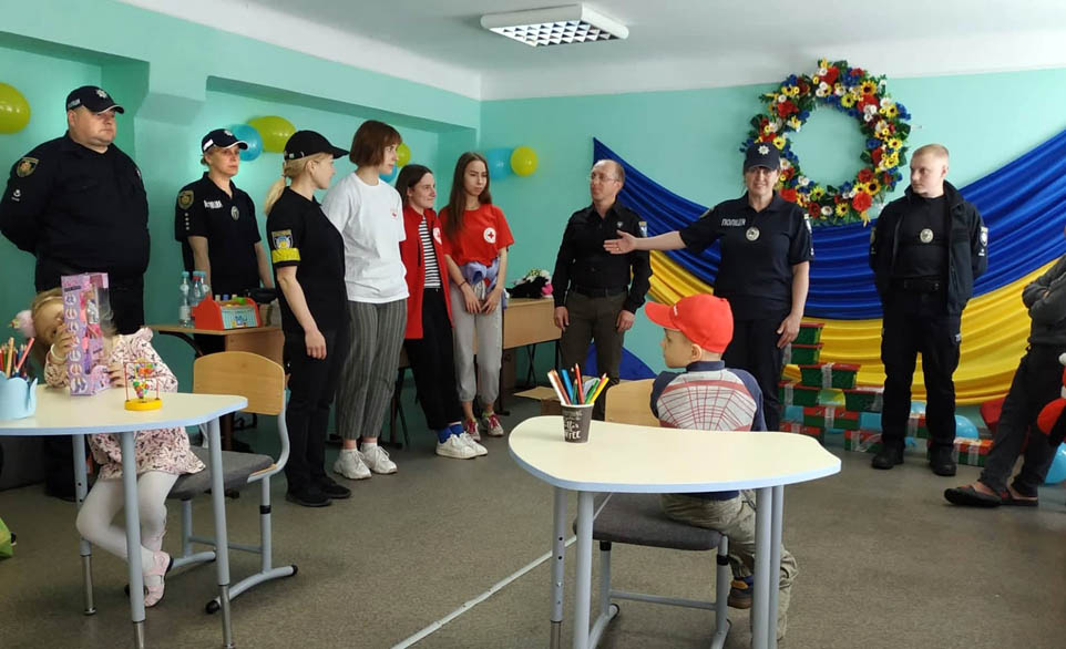 У Житомирі, в одному із компактних поселень, де мешкають внутрішньо переміщені громадяни, поліцейські поліції охорони, поліцейські ювенальної превенції, поліцейський групи реагування патрульної поліції, поліцейський капелан та волонтери Червоного Хреста України зустрілись із дітьми з «гарячих» точок України.