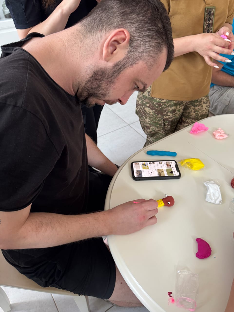 Цього разу замість лекцій — практика. Прості техніки зниження напруги, робота з емоціями і… ліплення. Саме творчість допомогла учасникам відчути спокій і хоч на трохи — відпустити тривожні думки. Коли зосереджуєшся на кольорі, формі, об'ємі — всередині ніби стихає буря.