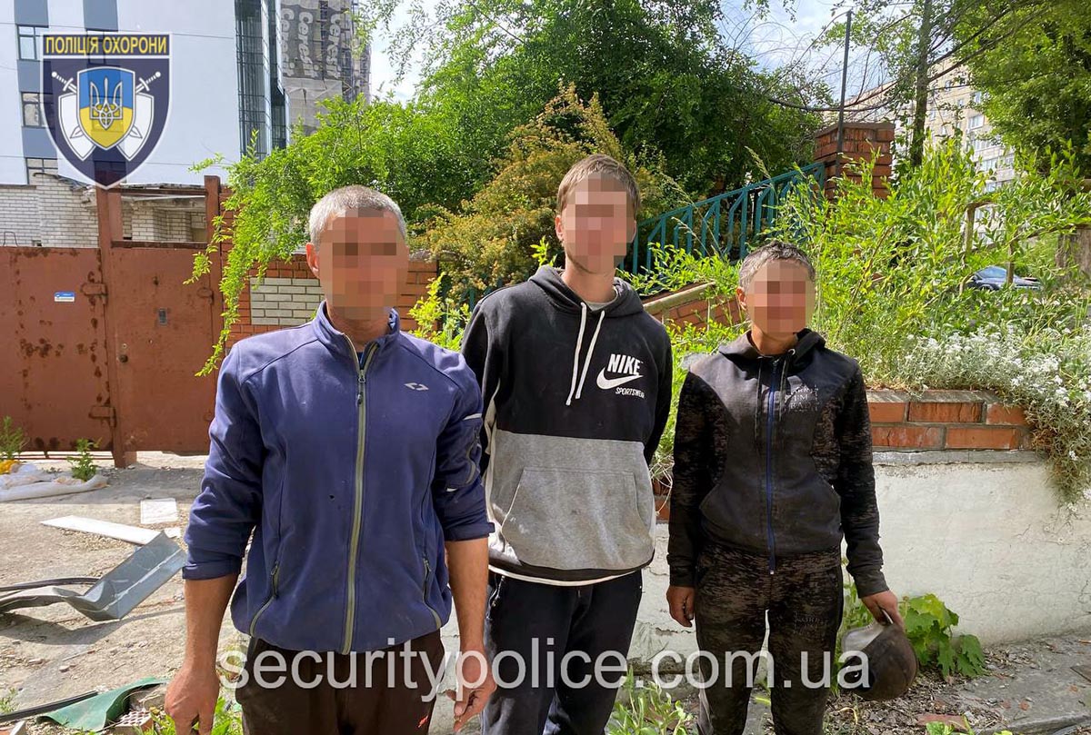 Під час обстеження території, правоохоронці виявили розбите скло вікна будівлі, в середині якої знаходилося троє осіб, які пакували металевий дріт до пакунків з метою подальшого їх виносу.