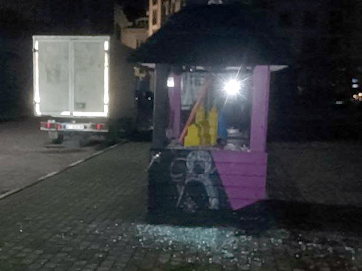 Обстежуючи прилеглу територію об’єкту правоохоронці виявили пошкоджену музичну композицію "Різдвяна шопка" та невідому особу поряд. Дану особу було негайно затримано.