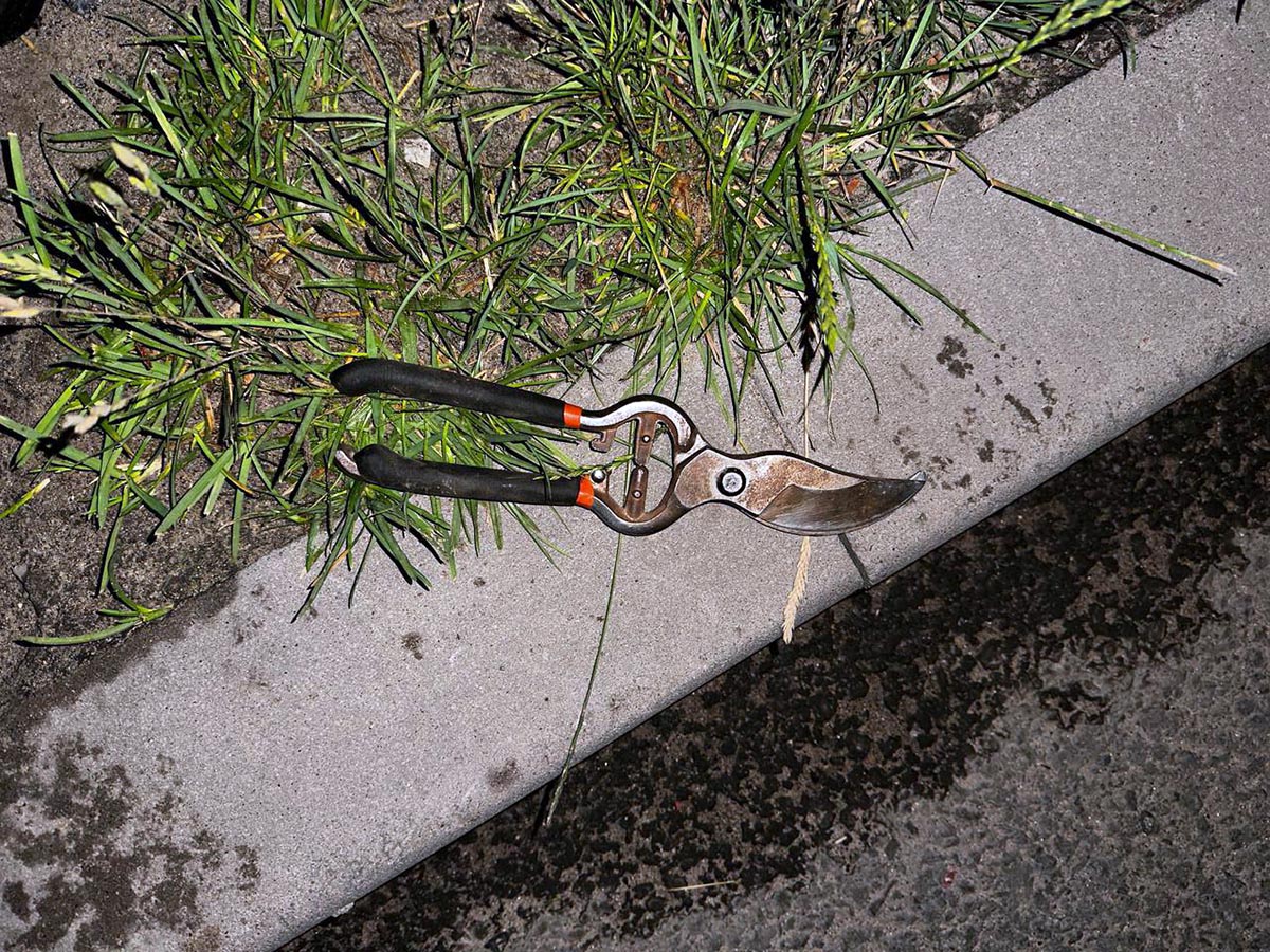 Під час обстеження прилеглої території вищевказаним нарядом спільно із суміжним нарядом полку УПО Львівської було виявлено підозрілу особу, яка перебувала в мокрому та брудному одязі, а також при поверхневому огляді було виявлено садові ножиці та дві пари рукавиць.