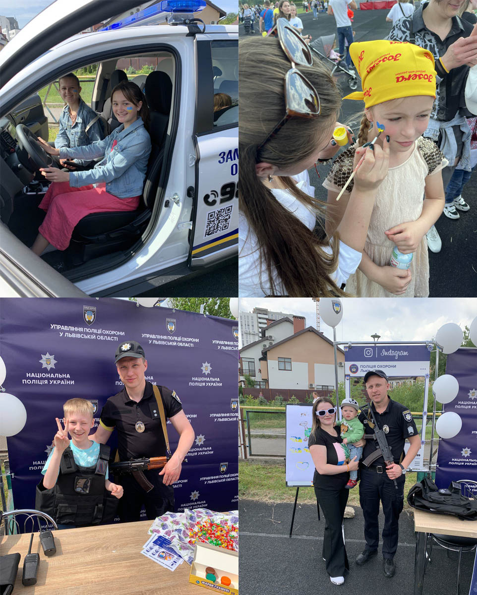Поліцейські охорони представили транспорт, зброю та спеціальні засоби, які застосовуються у діяльності поліції охорони. Діти з цікавістю одягали екіпірування, вмикали сирену та розмовляли по гучномовцю та радіостанції,а також активно спілкувалися з поліцейськими. Захід подарував дітям та їх батькам безліч позитивних емоцій, а головне те, що малеча спробувавши себе у ролі поліцейського, чи рятувальника, зрозуміла важливість цих професій.