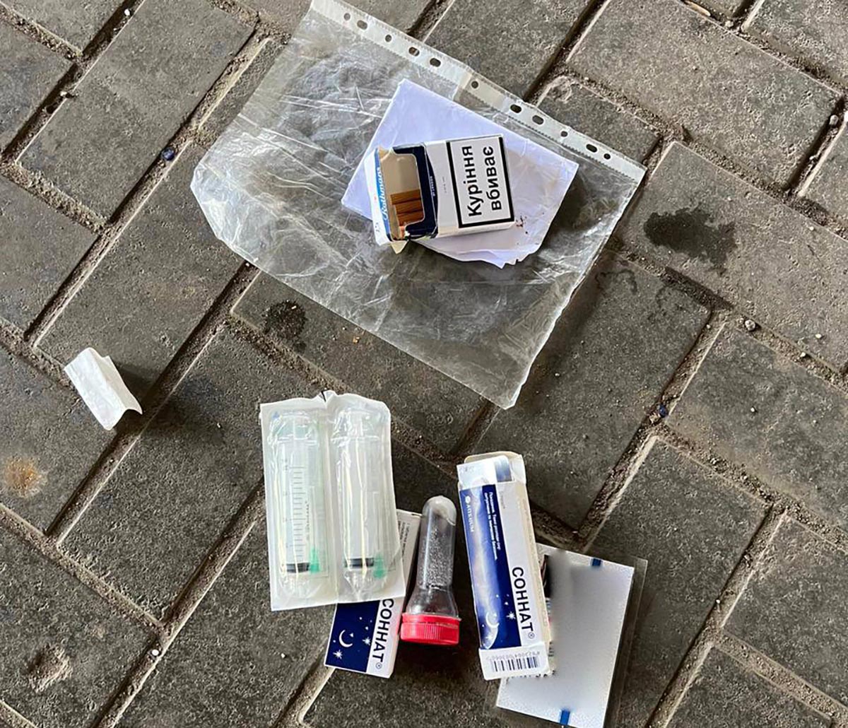 Увагу правоохоронців привернув 42-річний чоловік своєю дивною поведінкою, адже коли помітив патруль, відразу змінив напрям руху. Зупинивши особу, поліція охорони провела поверхневий огляд чоловіка під час якого затриманий дістав з кишені 4 пластини з “Метадоном”, розчиннну порошкоподібну речовину білого кольору в пластиковій місткості та використаний шприц.