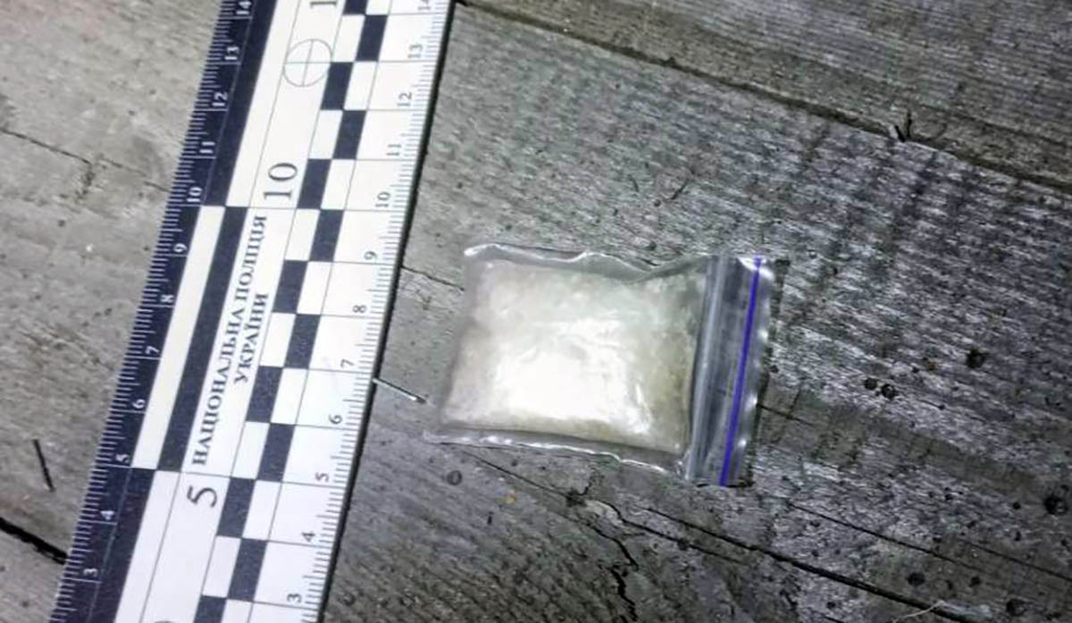 Під час поверхневої перевірки у нього було виявлено поліетиленовий згорток із подрібненою кристалоподібною речовиною білого кольору, зовні схожою на наркотичну.