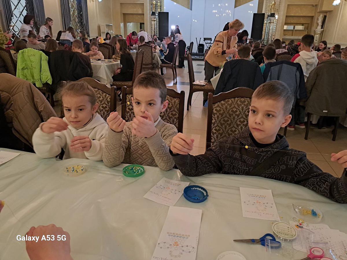 Під керівництвом викладачів декоративно-ужиткового мистецтва діти військовослужбовців ЗСУ і працівників поліції охорони власноруч виготовляли обереги для воїнів: листівки, вироби з бісеру, фетру, малюнки, аплікації тощо. Далі це розклали у пакунки з пасочками, які освятив священник. Напередодні Великодня волонтери відвезуть святкові гостинці захисникам на передову.