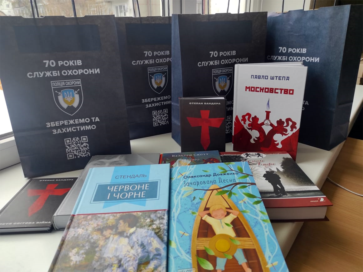 Книжки для героїв передали і працівники поліції охорони Тернопільщини. Це, зокрема, класика і твори сучасної української літератури.