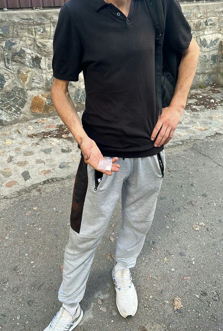 Під час перевірки документів та поверхневого огляду громадянина правоохоронці виявили, зіп-пакет з речовиною білого кольору схожою на наркотичну.