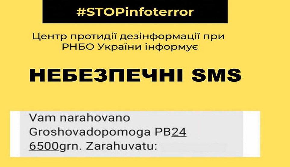 Центр протидії дезінформації при РНБО України попереджає про черговий різновид інтернет-шахрайств: SMS-розсилка на телефон із повідомленням про нарахування грошей Українцям почало надходити повідомлення на...