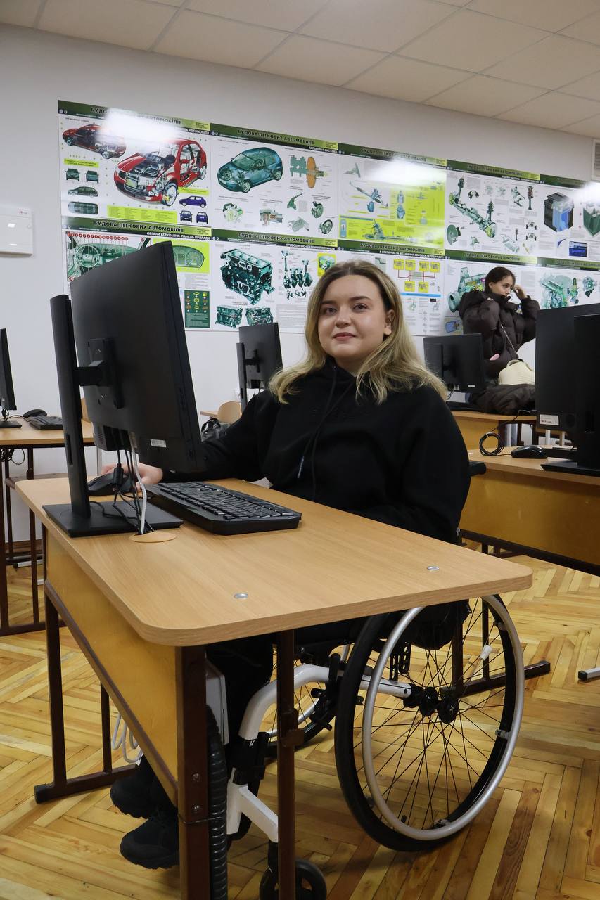 Нині дівчина проходить теоретичну частину курсу. Вона відзначає високий рівень підготовки, комфортні умови й уважне ставлення викладачів. За її словами, пандуси, зручна логістика, адаптовані кабінети — усе це створює середовище, у якому вона не почувається «інакшою».