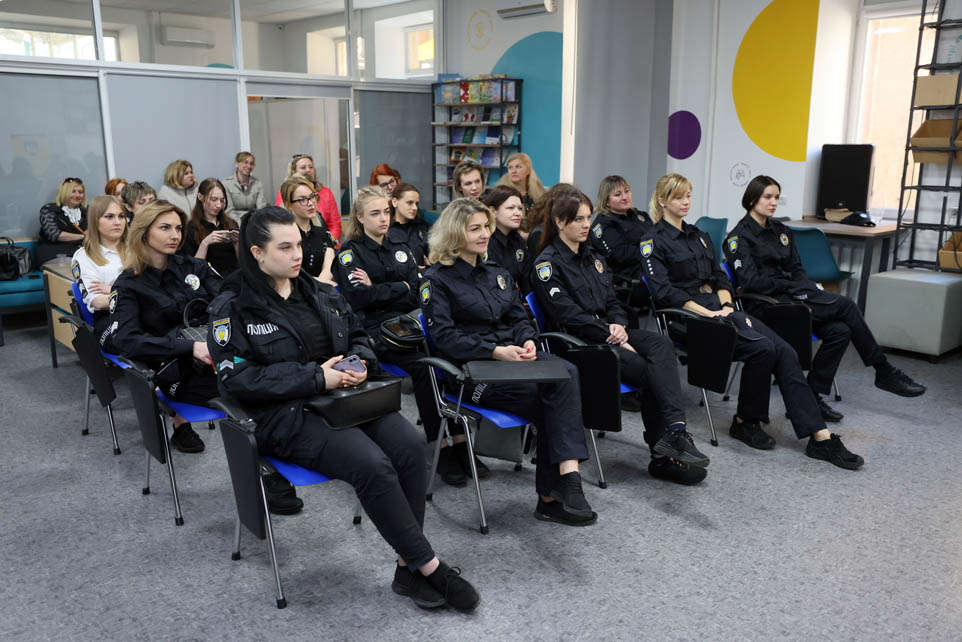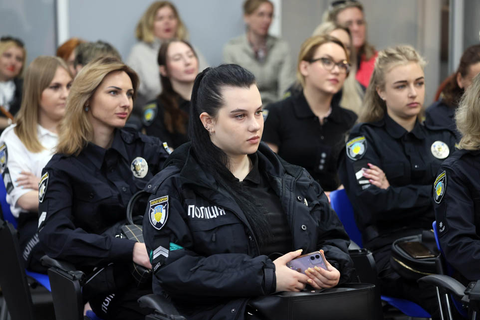 Спілкуючись в теплій атмосфері з жінками-поліцейськими Марина ХОНДА зауважила, що «під час війни жіноче лідерство стає ще більш актуальним та явним, адже жінки беруть участь у бойових діях пліч-о-пліч з чоловіками, займаються волонтерством, продовжують працювати та надійно забезпечують тил».