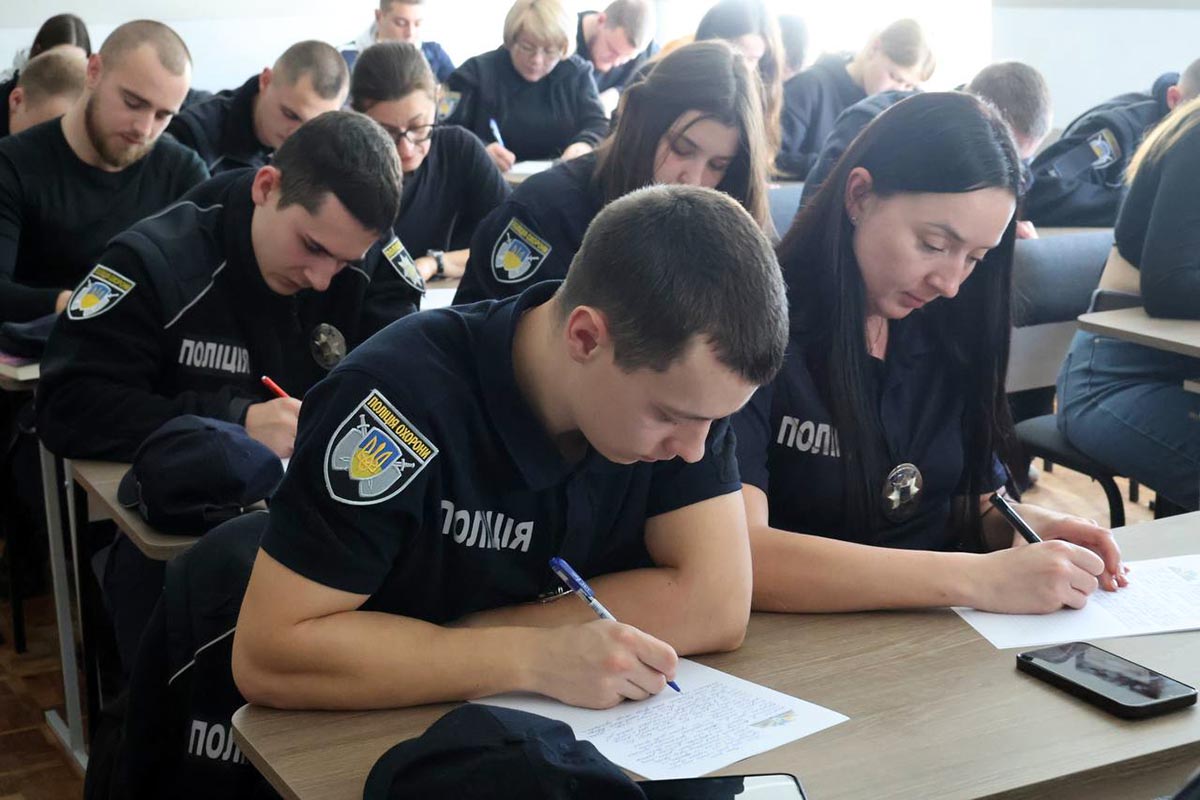 Управління поліції охорони в усіх областях організували спільне написання диктанту: хтось зібрався у службових кабінетах, хтось — у навчальних аудиторіях або навіть у чергових частинах. Для багатьох поліцейських це вже стала традицією, а для когось — перший досвід долучення до акції, що об’єднує покоління.