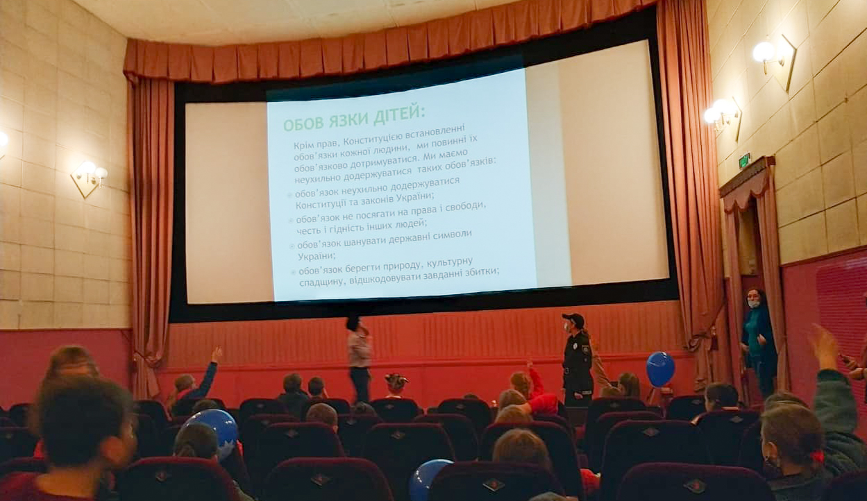1 червня у Житомирському кінотеатрі імені Івана Франка, перед переглядом мультфільму, працівники ювенальної превенції ГУНП разом з поліцейськими охорони нагадали житомирським школярам про правила безпеки.