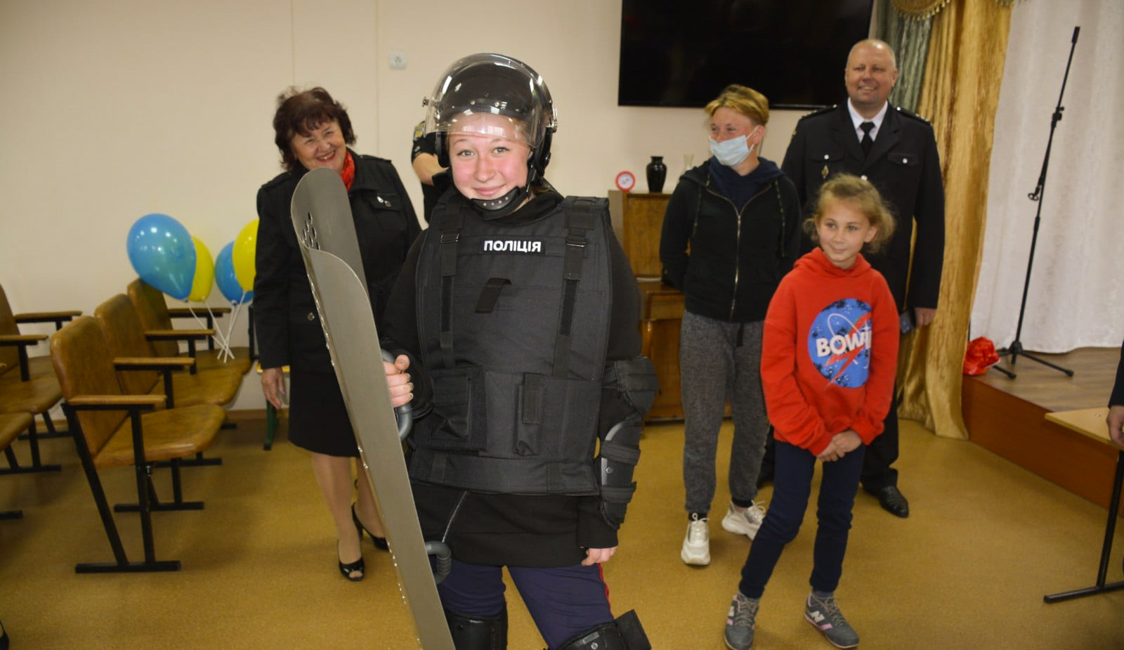 Спеціально до Міжнародного дня захисту дітей, поліція охорони Миколаївщини приготувала святкову програму - школярі дуже зраділи подарункам та можливості пограти в цікаву гру: дві команди навипередки одягають екіпірування поліцейських групи затримання. Це шоломи, налокітники, бронежилети, наколінники та завершальна деталь «одягу» правоохоронця – це щит. В підсумку дівчата перемогли хлопців і вже хочуть стати поліцейськими.