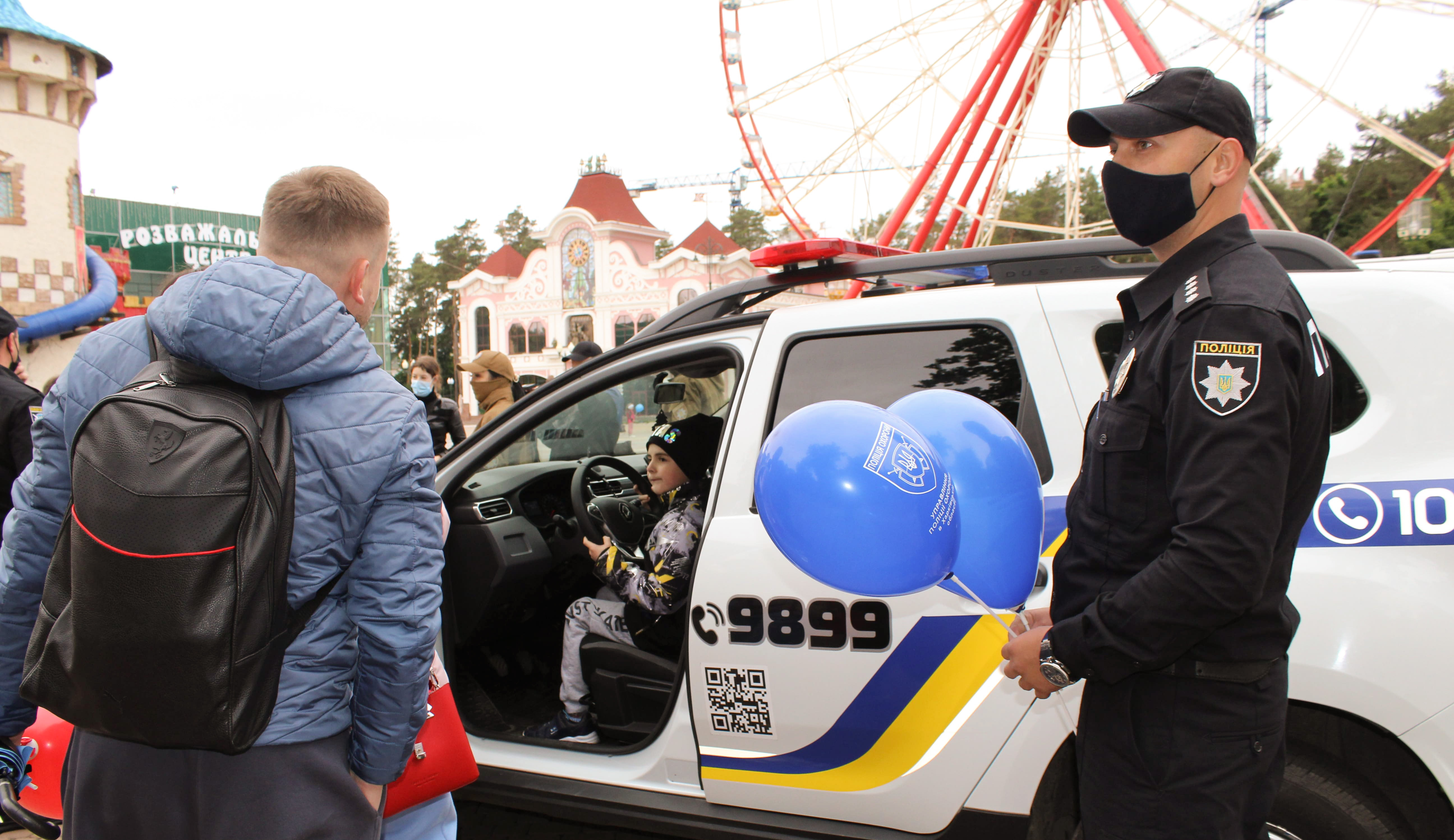 У цей святковий, переповнений позитивними емоціями день, дітлахи відчули себе справжніми поліцейськими – сиділи в службовому авто, заполонивши Долину троянд гучною мелодією сирен, приміряли захисні шоломи та бронежилети.