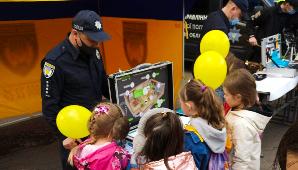 Під час заходу поліцейські охорони ознайомили юних жителів краю із специфікою роботи підрозділу, а для того щоб більше зацікавити малечу та їх батьків, розгорнули експозицію технічного обладнання, яке використовується для монтажу сучасних охоронних систем, спецзасобів та екіпірування. Особливу популярність у дітей здобули службовий автомобіль та екіпіровка поліцейських. Вони з цікавістю та захопленням розглядали спецзасоби, приміряли на себе бронежилети і шоломи, сідали за кермо спецтранспорту.