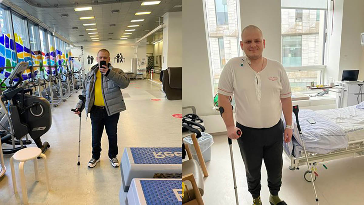 Сім місяців Євгеній провів у Данії, де мав ще дві операції. 5 січня 2023-го йому поставили штучний суглоб у коліно. Спочатку чоловік пересувався на кріслі колісному, а згодом на милицях.