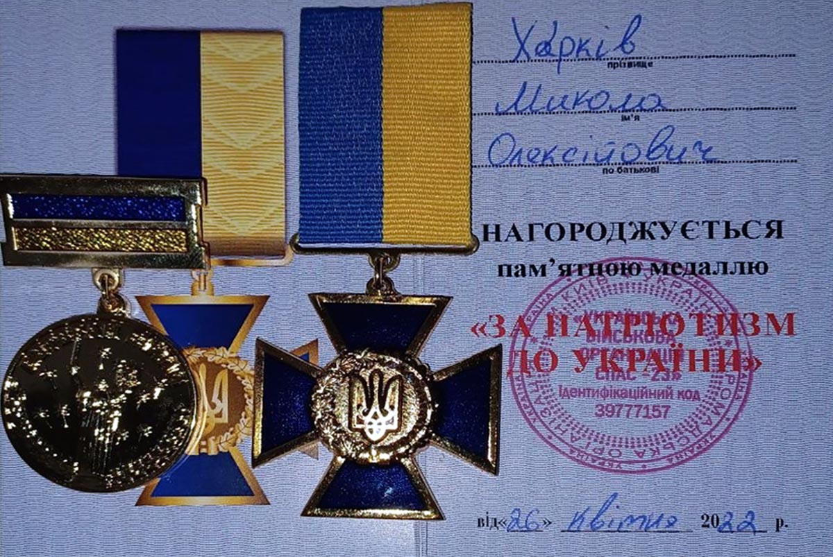 У 2022 році Микола був відзначений пам’ятною медаллю «За патріотизм до України» — як визнання його мужності, відданості та внеску в захист держави.