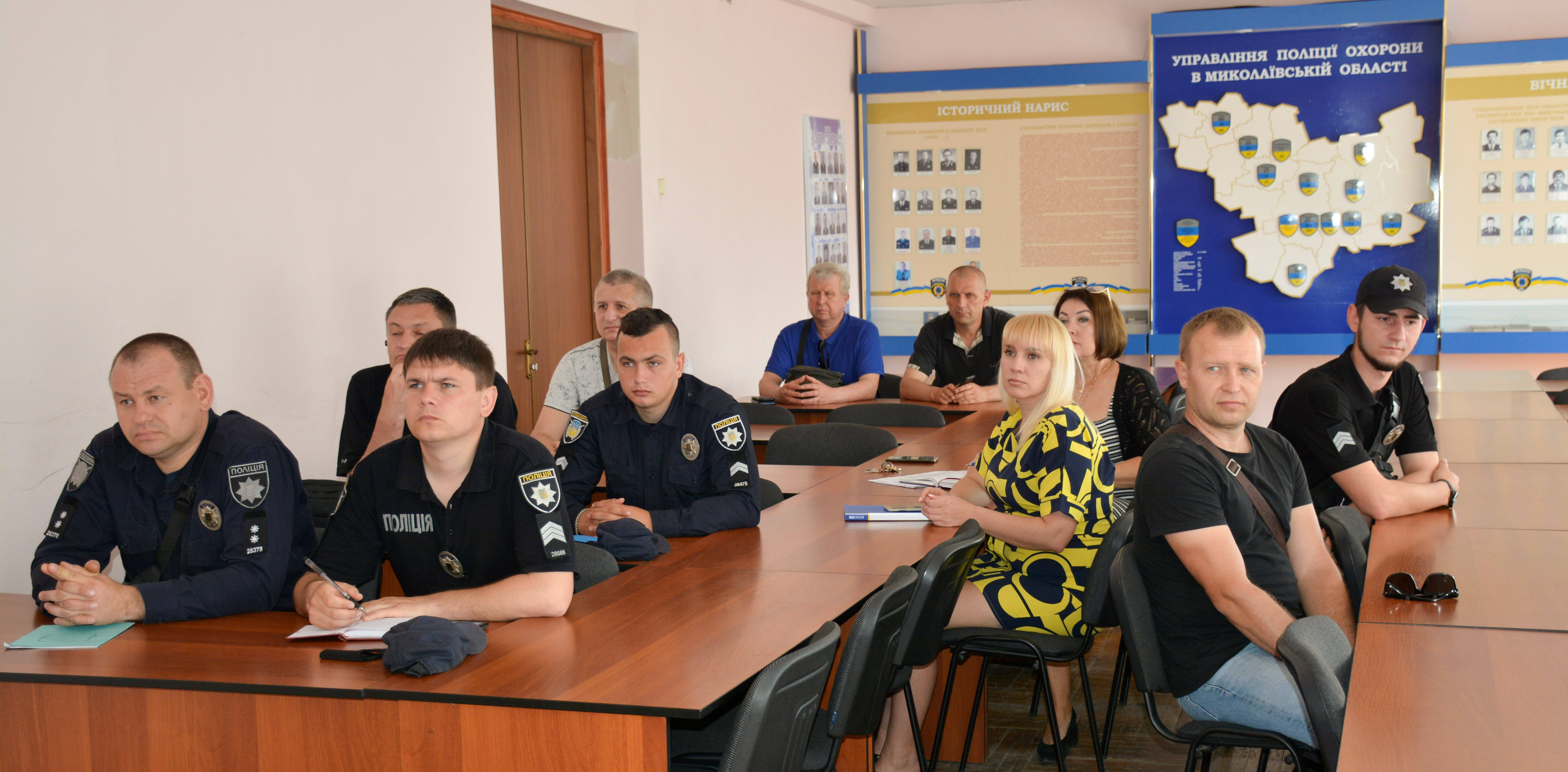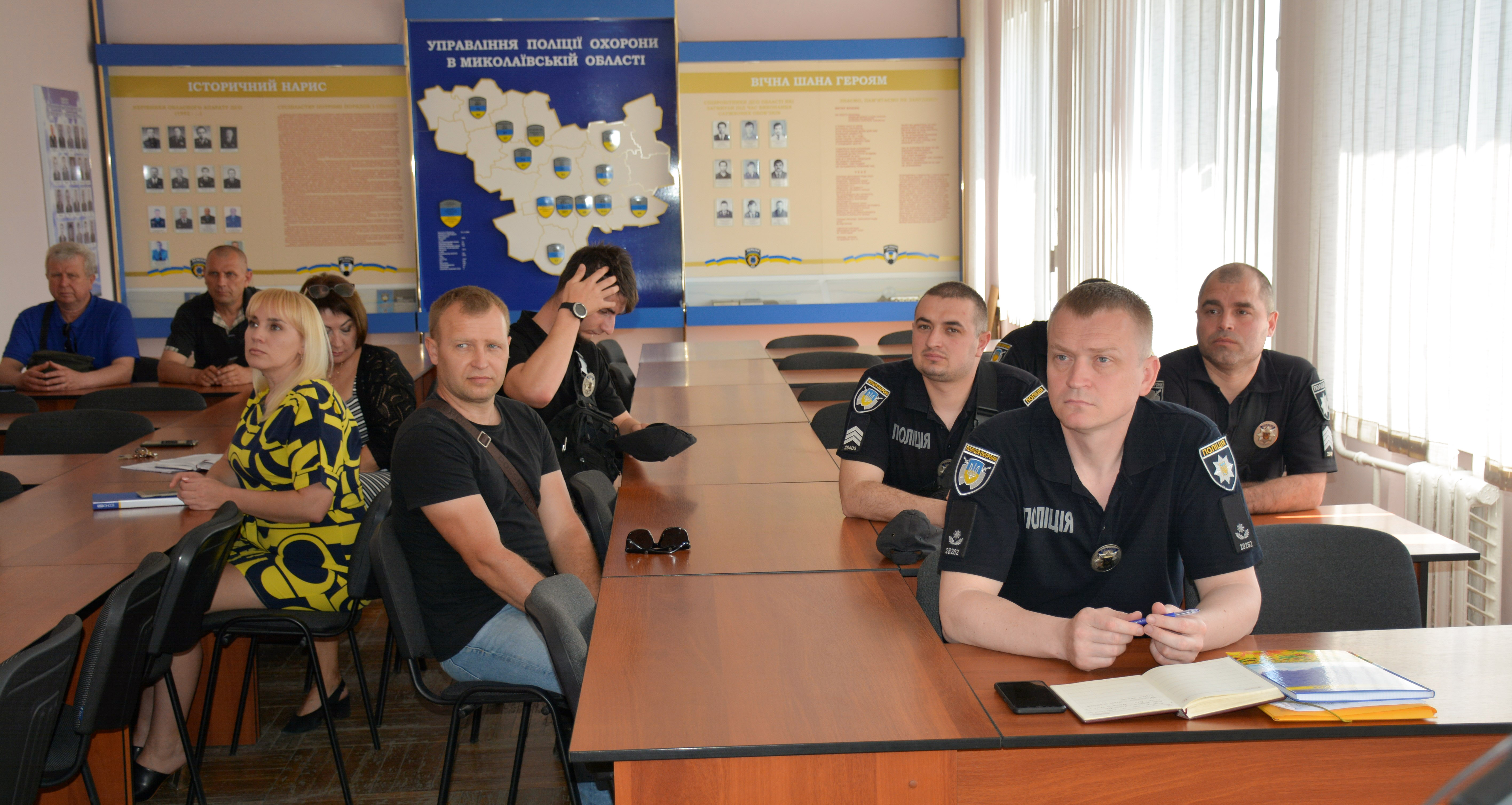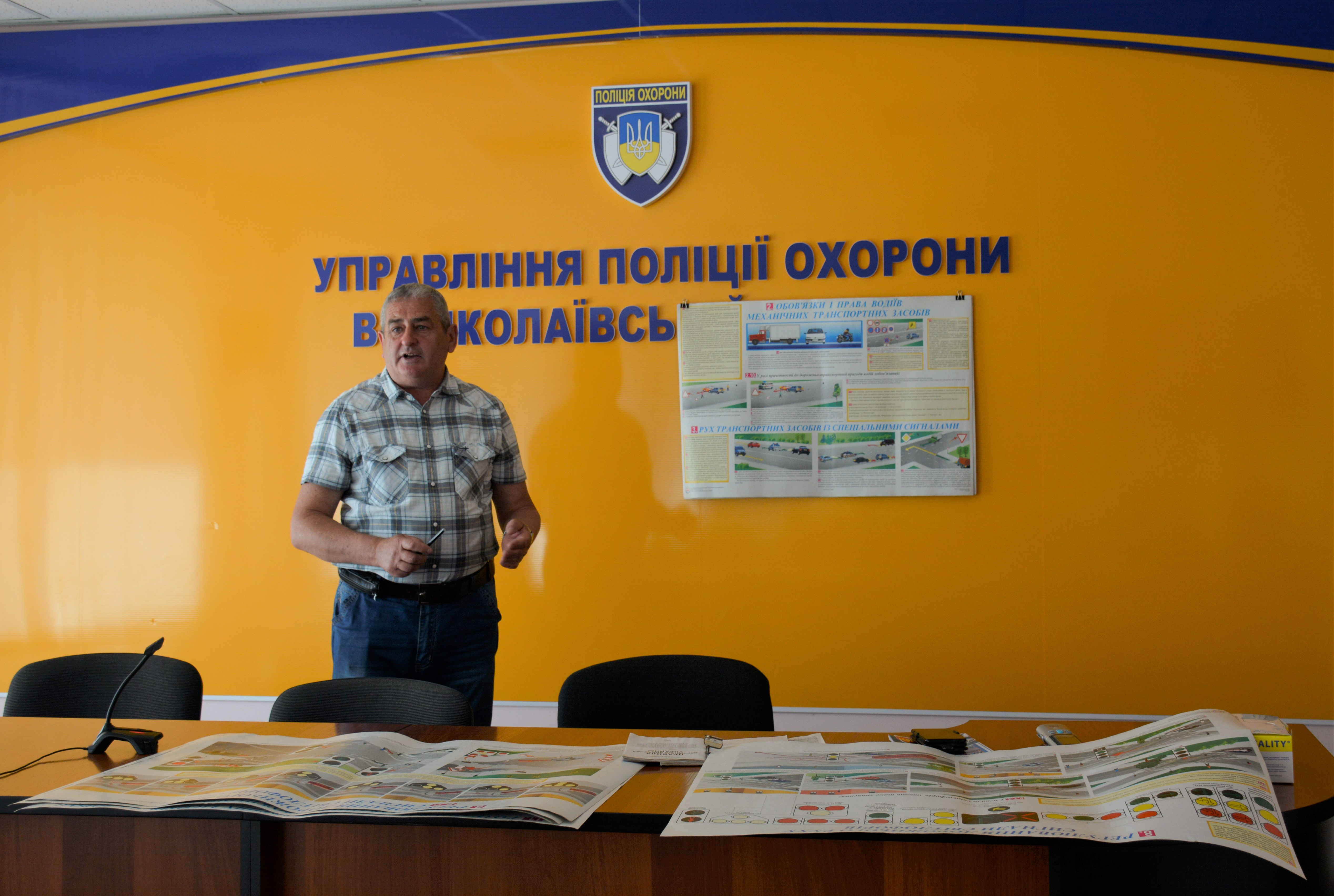 Інспектор автошколи №1 м. Миколаєва у формі живого діалогу, з прикладами та наочними матеріалами, розказав про основні правила дорожнього руху, поводження на регульованих ділянках дороги та в екстремальних ситуаціях за кермом. Як показує практика, непередбачувані події та погоні – це буденність поліції охорони.