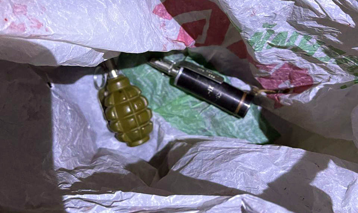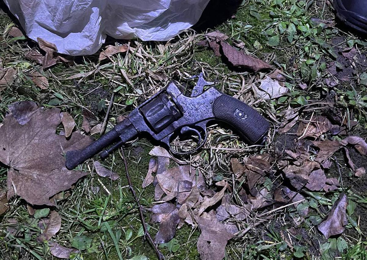 При поверхневій перевірці у затриманого було виявлено предмет схожий на пістолет «Наган» та предмети схожі на «гранати».