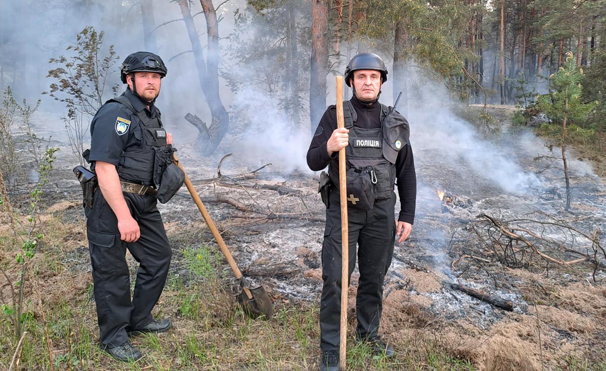 Співробітники групи охорони обʼєктів та публічної безпеки Дмитро Кобенко і Олександр Сидоренко разом з начальником Куп'янського районного відділення Управління поліції охорони в Харківській області Станіславом Михальцовим запобігли перекиданню вогню на об’єкт енергетичної інфраструктури.