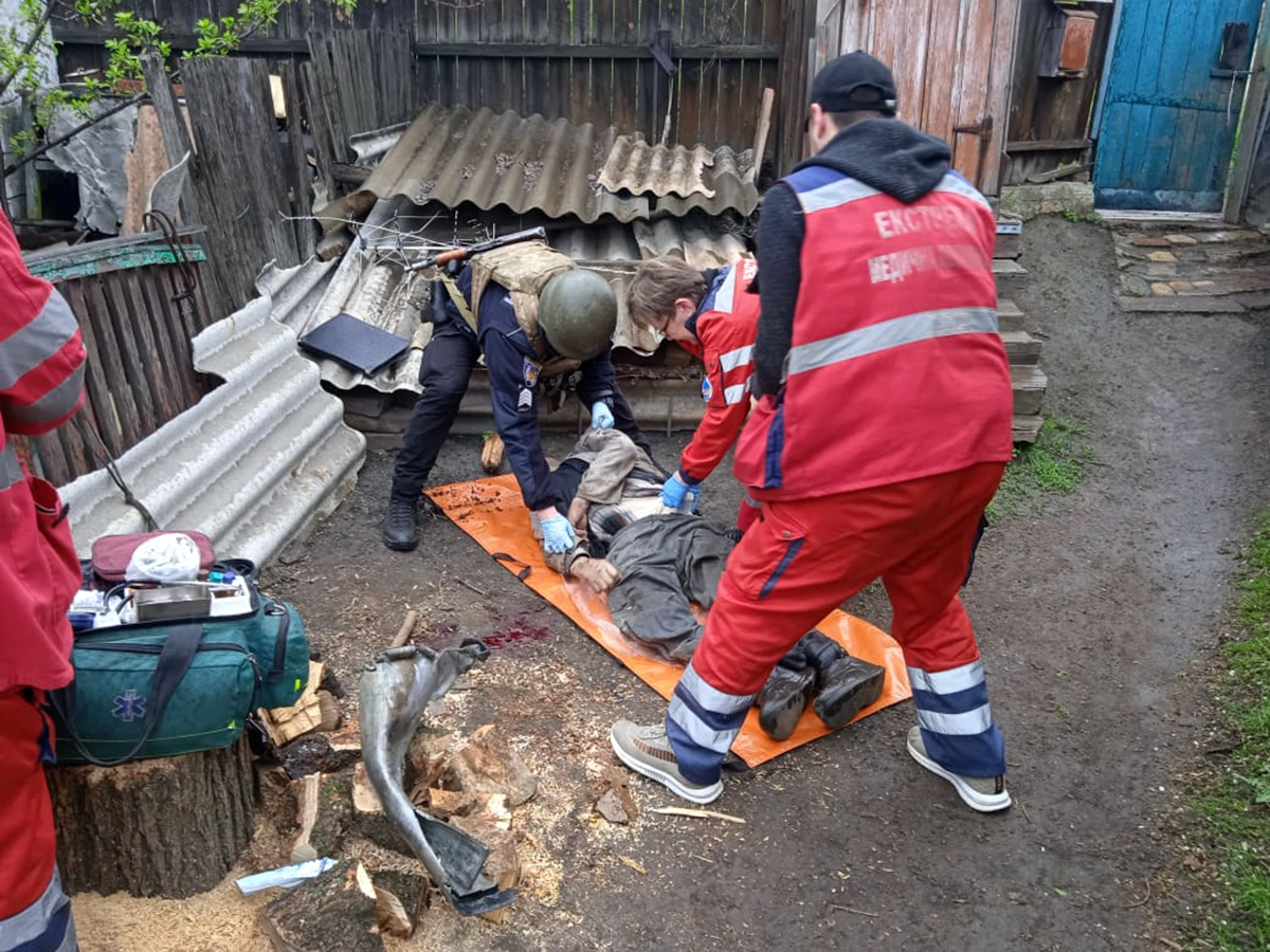 Одразу на місце події прибув екіпаж наряду реагування Бахмутського районного відділу. Поліцейські охорони Богдан Остапенко та Олександр Білянський надали постраждалому першу допомогу та дочекалися приїзду бригади «швидкої допомоги».